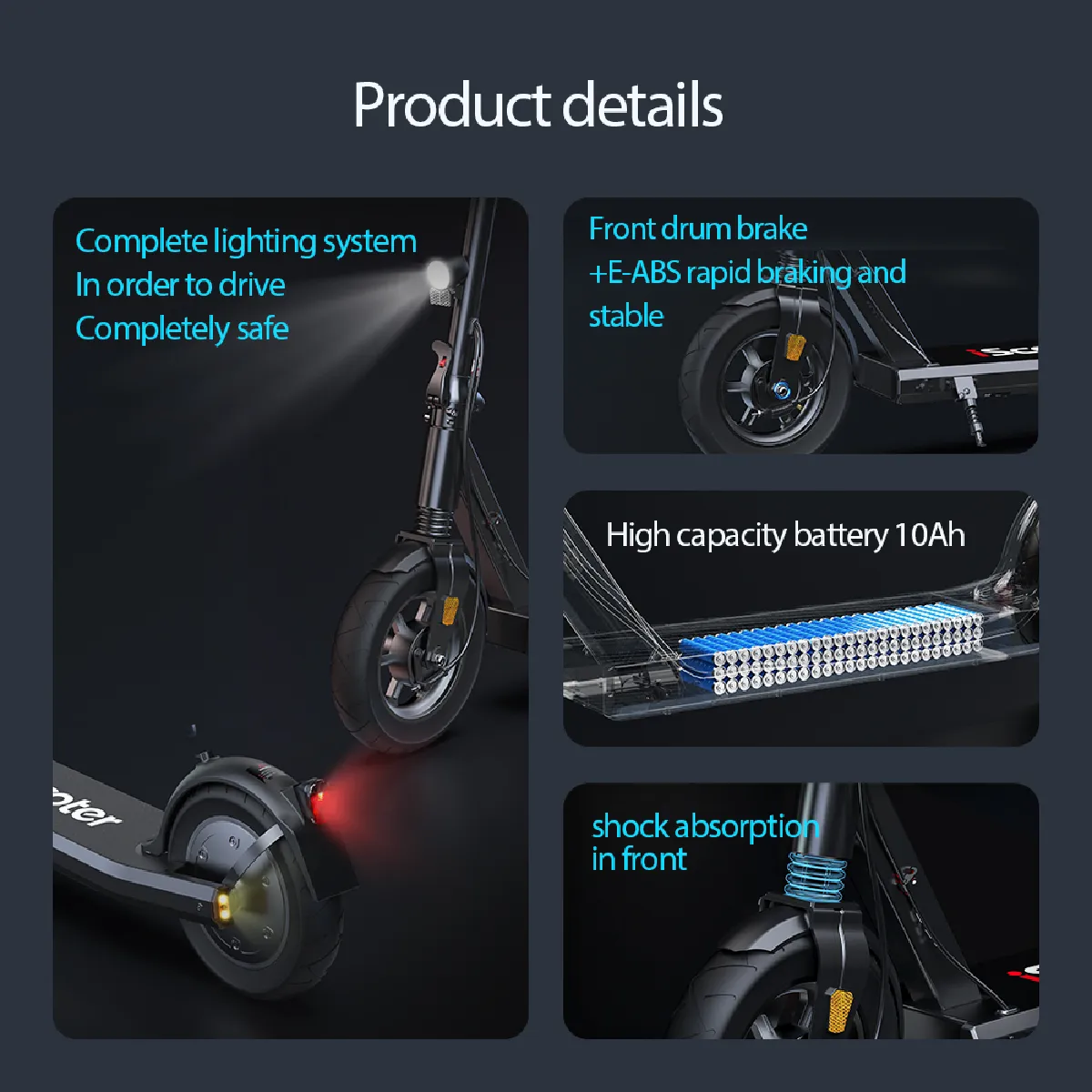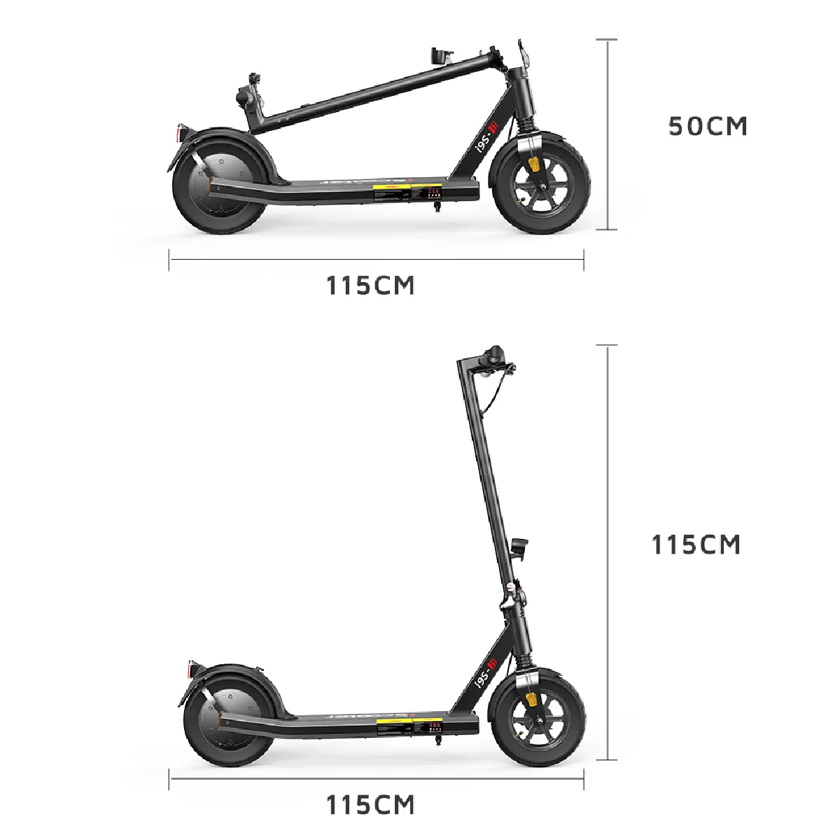 Les pneus de 10 pouces offrent une excellente adhérence et stabilité sur tous types de surfaces, améliorant le confort et la sécurité de conduite. La trottinette dispose d'un design pliable ultra-compact : une fois pliée, elle mesure seulement 115*20*54 cm pour un poids net de 17,4 kg, facile à transporter, ranger dans un coffre de voiture ou emporter dans les transports en commun.