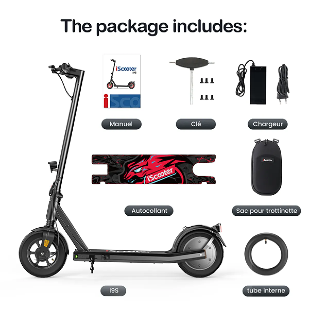 Commentaire vendeur : Cette trottinette électrique iScooter i9S est équipée d’un moteur 500W déverrouillable jusqu’à 35km/h, d’une batterie 42V 10Ah offrant 30km d’autonomie. Elle dispose d’un double freinage EABS + disque, d’une suspension avant et de pneus 10 pouces. Pliable, légère (17,4kg) et robuste (charge 120kg), elle inclut phares LED, accessoires complets et chargeur européen, idéale pour la ville.