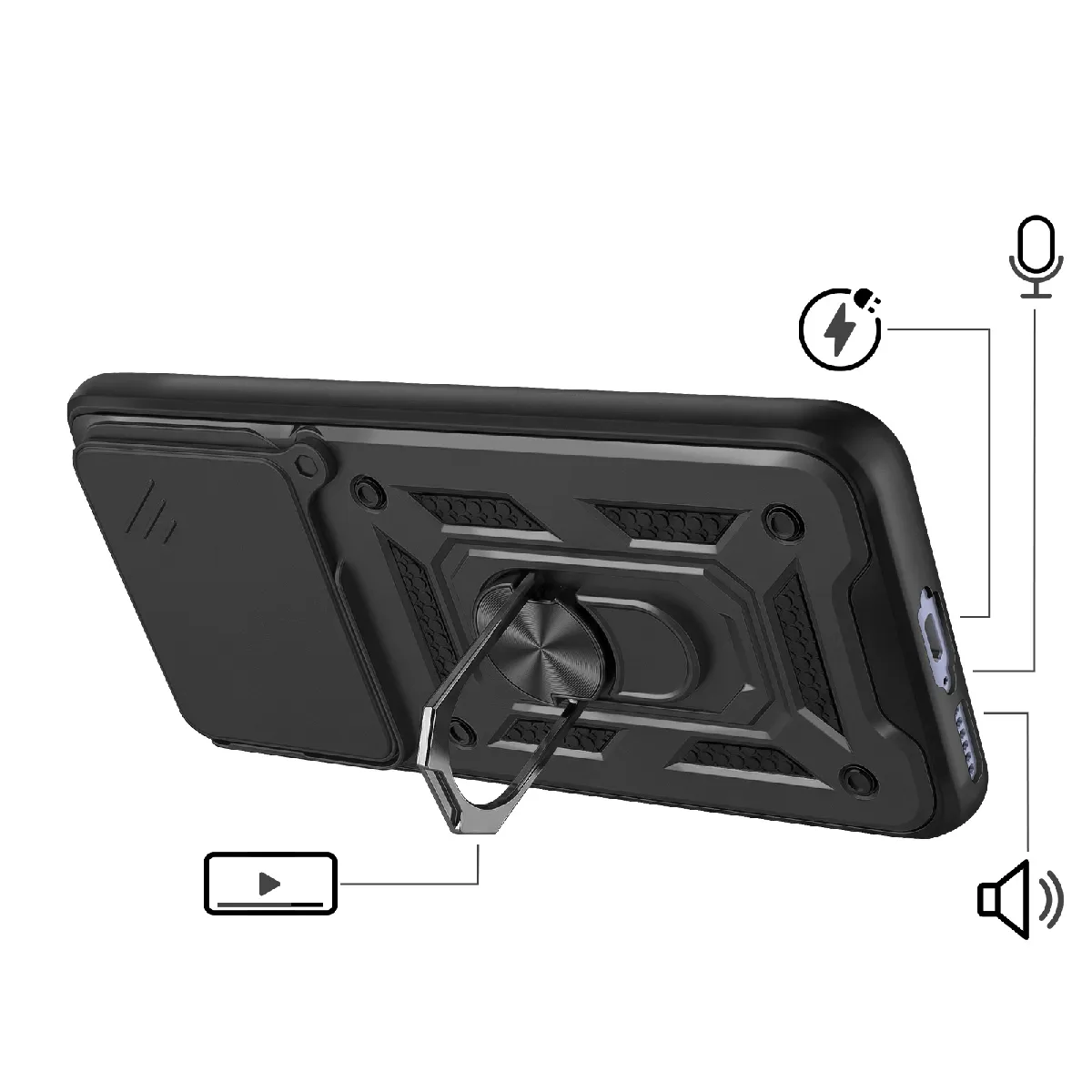 Mayaxess Coque Anneau pour Redmi Note 15 4G avec Cache Caméra Coulissant Noir |