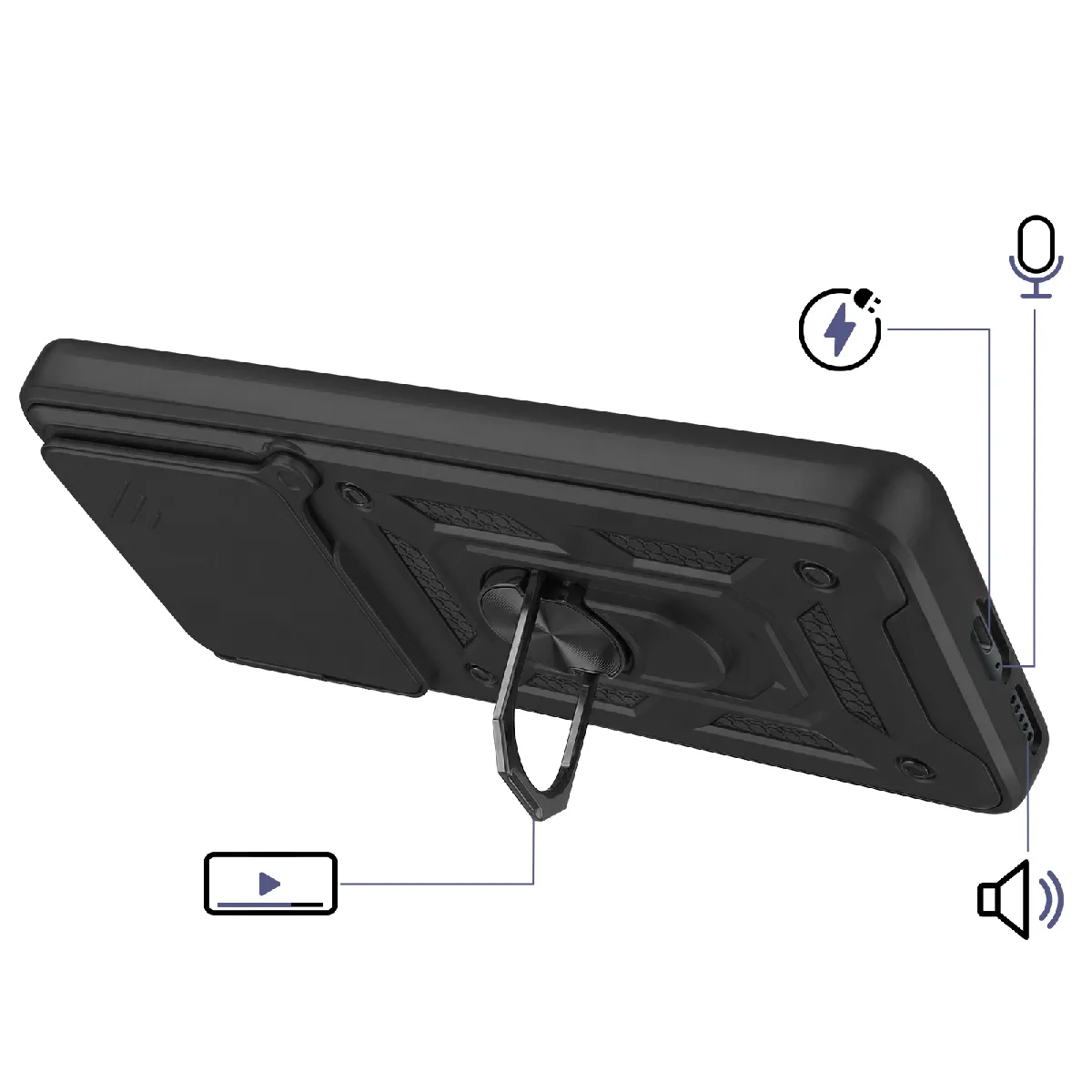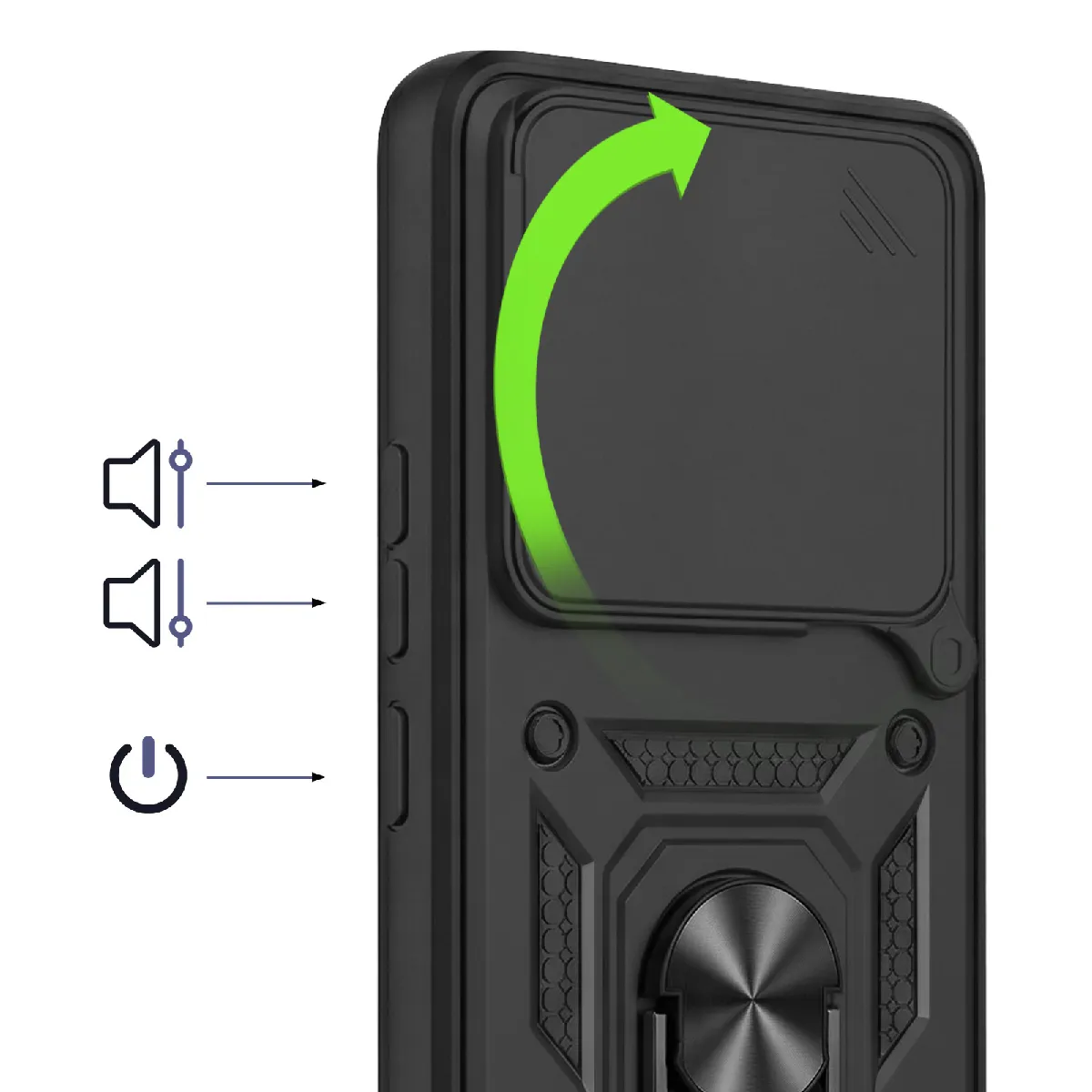 Mayaxess Coque Anneau pour Redmi Note 15 5G avec Cache Caméra Coulissant Noir |