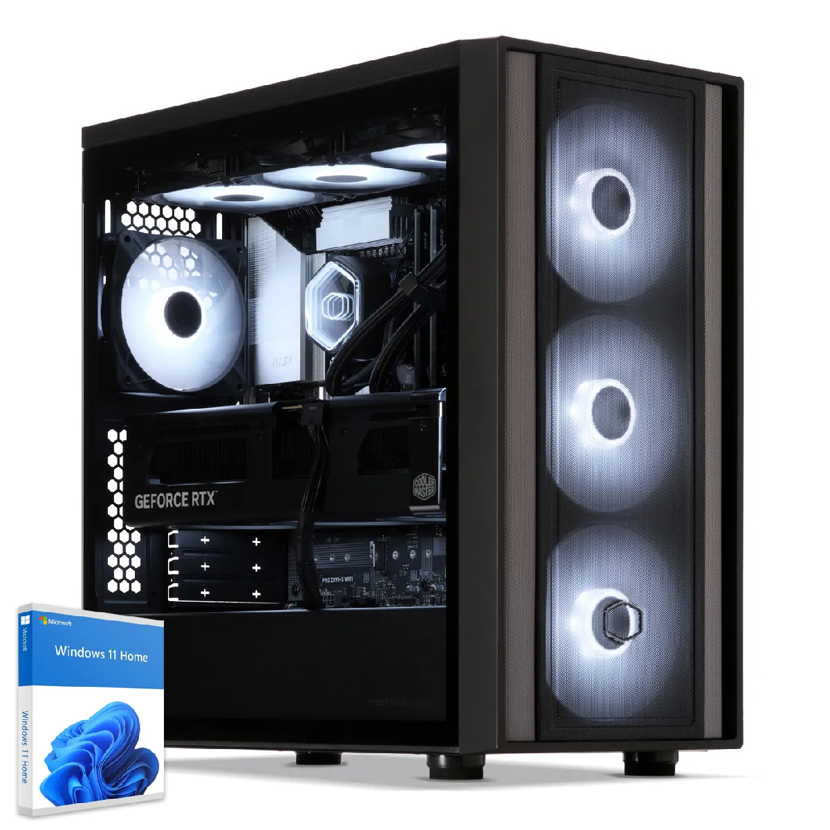 Boîtier Cooler Master MasterBox-600 - Ventilateurs: 1x 120mm, 3x 140mm Alimentation 850W Cooler Master MWE Modular (80+ Gold) Nb emplacements disque dur 2 Carte mère MSI PRO Z890-S WIFI Processeur Intel Core Ultra 7 265KF 20x 3.9Ghz (max 5.5Ghz) Ventilateur CPU Watercooling 360mm - Cooler Master MasterLiquid 360 Core II Carte graphique Geforce RTX5080 Cooler Master 16Go RAM 64Go DDR5 5600Mhz Dual Channel (2x32Go) - 192Go max Disque SSD 2To SSD M.2 Samsung 990 Pro (7450Mbps/6900Mbps) Lecteur optique Aucun Système d'exploitation Windows 11 Home 64 bits FR WiFi WiFi 7 Bluetooth Bluetooth 5.4 Connectique avant 1x USB.C 3.2 | 2x USB 3.0 | Prises micro & casque Connectique arrière 1x USB.C 4.0 | 1x USB.C 3.2 | 6x USB 3.1 | 3x Display Port | 2x HDMI | 2.5 Gigabit Ethernet LAN | Audio 7.1 Dimensions (L x H x P cm) 23 x 47,4 x 48,1