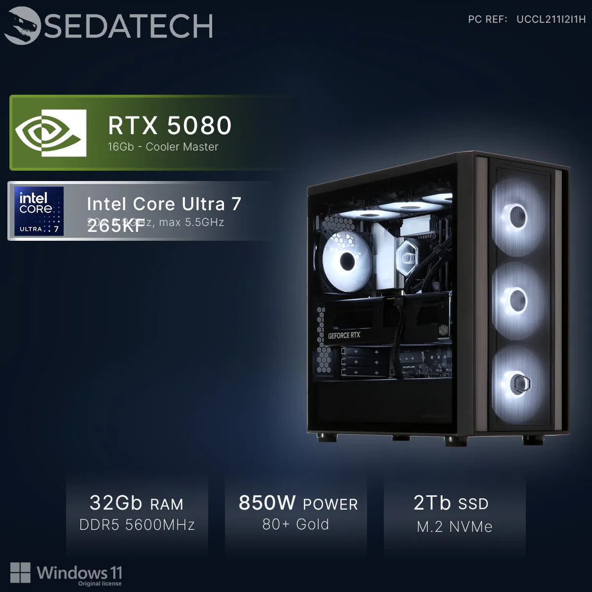 Sedatech PC Gamer, Core Ultra 7 265KF, RTX5080, 32Go DDR5, 2To SSD, Win 11 |