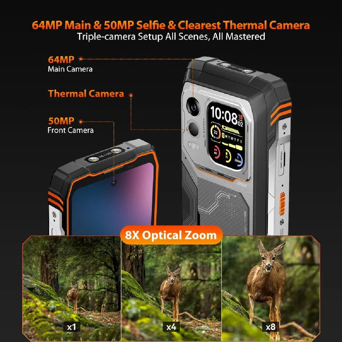 Caméra principale : 64 MP ; caméra thermique ; caméra frontale : 50 MP