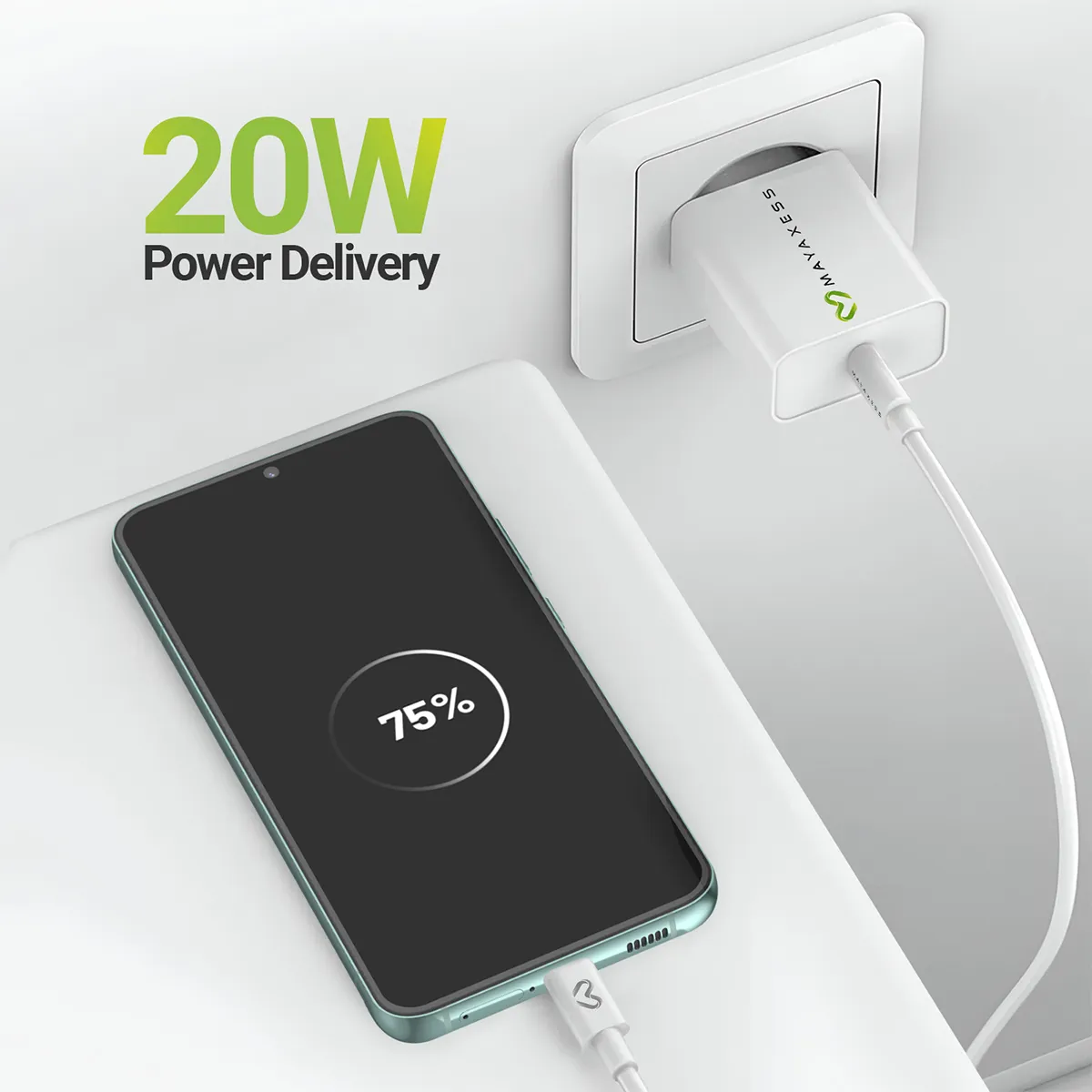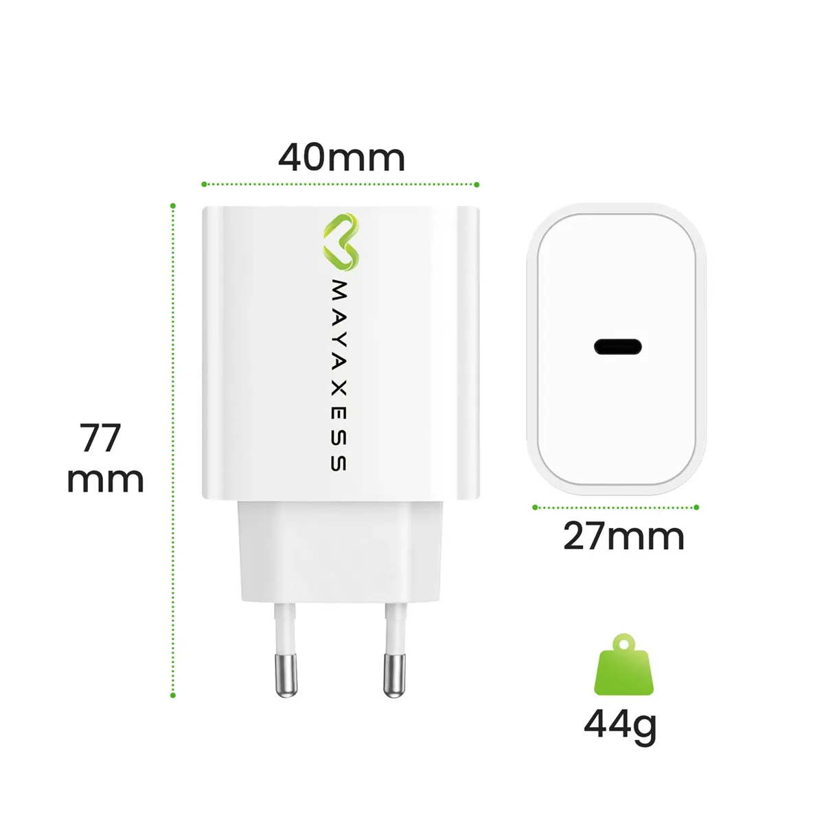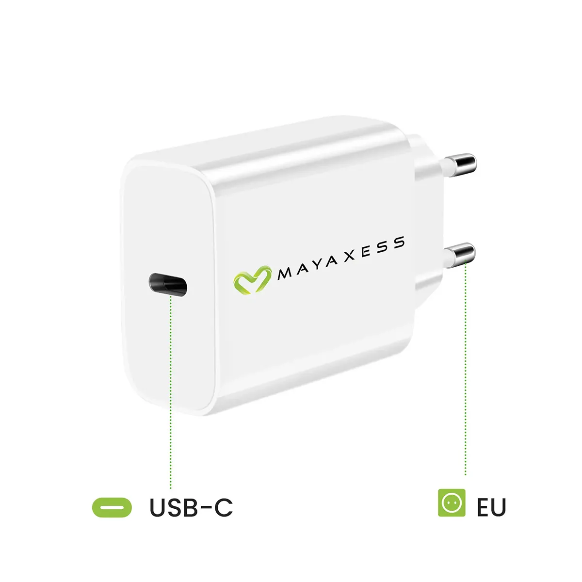 Mayaxess Chargeur Secteur pour Galaxy S22 20W + Câble USB-C 1m Blanc
