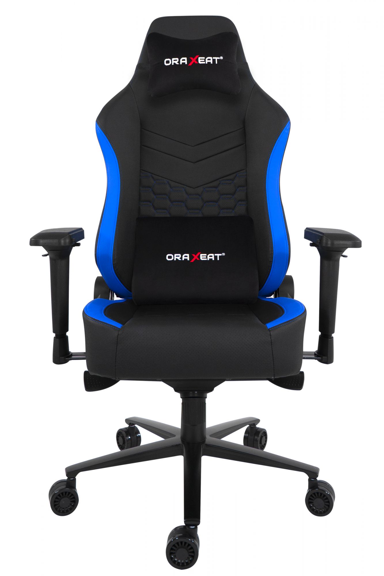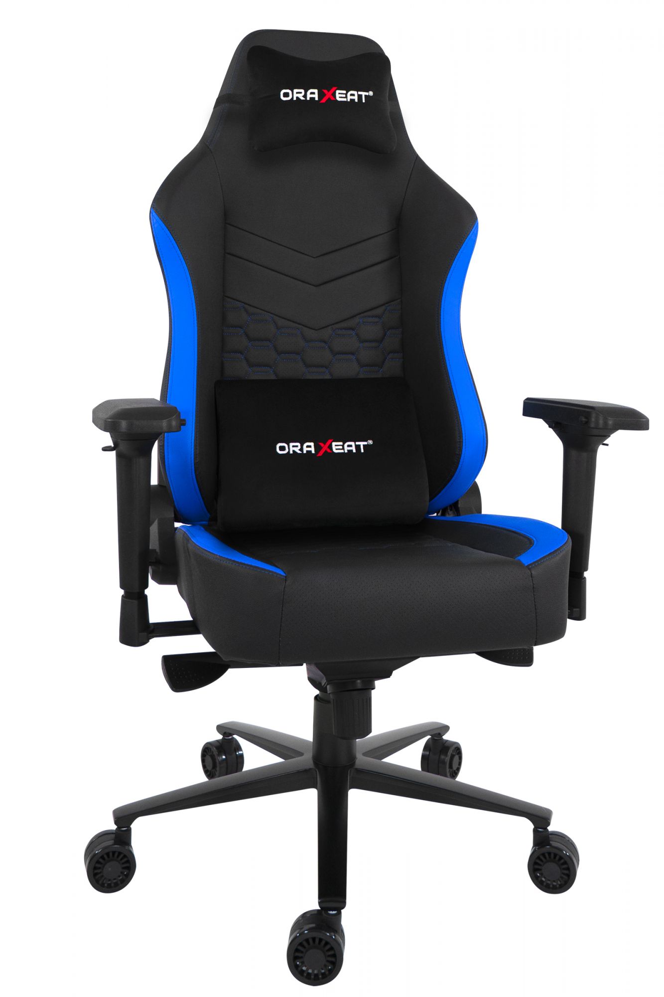 Siège gamer TK 700 Oraxeat Noir/Bleu avec accoudoirs 4D ajustables. Ce fauteuil ergonomique vous mènera à la victoire avec son cadre en acier de 22 mm d'épaisseur et sa densité de mousse de 55 kg/m3.