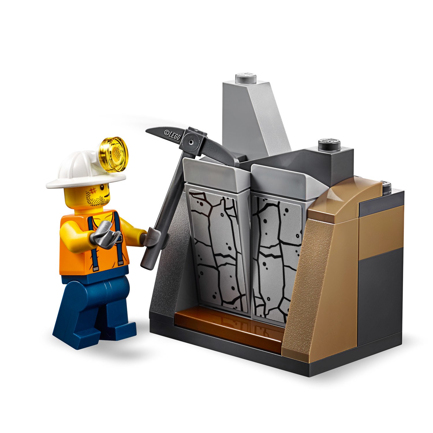 Ce gros rocher a l'air intéressant. Approche l'excavatrice et actionne le marteau-piqueur. Baam ! Regarde derrière les rochers : parviendras-tu à récupérer l'or sans déranger l'araignée luisante géante ? Trop tard ? COURS ! L'excavatrice avec marteau-piqueur permet de découvrir un trésor bloqué dans la roche ! L'excavatrice permet de creuser les mines de LEGO® City avec sa fonction marteau-piqueur et une cabin.