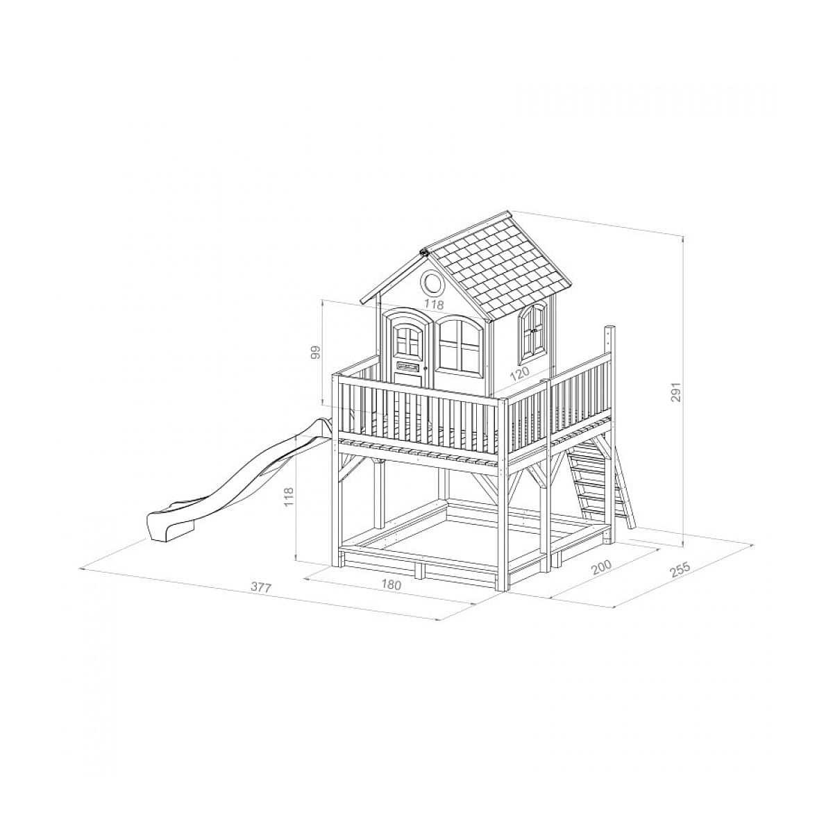 Vos enfants vont jouer pendant des heures en toute sécurité avec la maisonnette sur pilotis Max d'AXI. Son design « en biseau » est unique ! Cette cabane est en bois de Hemlock, avec un toit en cyprès. Ce sont des bois très résistants, naturellement imputrescibles, insensibles aux champignons et insectes, et garantis 10 ans. Bois non-traités chimiquement, donc plus écologiques et plus surs pour les enfants. Bois 100% FSC, donc en provenance de forêts gérées selon des principes de développement durable. Toute la cabane est livrée peinte et traitée avec un vernis aqueux sans produit chimique. Les fenêtres sont en plexiglass. Une fenêtre a des volets, et plusieurs s’ouvrent. Les fenêtres et la porte sont dotées d’une fermeture aimantée, et la porte a une fente pour glisser le courrier Le toboggan fait 118cm et peut être attaché des 2 cotés. Une arrivée d’eau peut y être jointe. Le bac à sable contient jus qu’à 600 kg de sable (non fourni) Une bâche est fournie pour couvrir le bac à sable une fois le jeu terminé. La maison est facile à construire grâce à l’utilisation de panneaux de 15mm pré-percés et prêts à l’emploi. Cette maison de la marque AXI est marquée CE et testée et produite selon les normes de sécurité EN 71 afin de garantir un plaisir de jeu sûr. Pour enfants à partir de 3 ans.