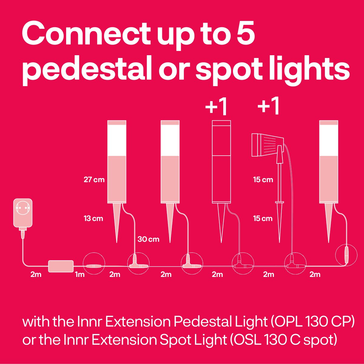 REMARQUE : Ce pack unique peut uniquement être utilisé en complément d'un lot de 3 spots lumineux d'extérieur (OSL 130 C) existant OU un lot de 3 luminaires sur pied d'extérieur (OPL 130 C). Ce pack ne contient pas de boîtier de commande et n'est pas disponible séparément.