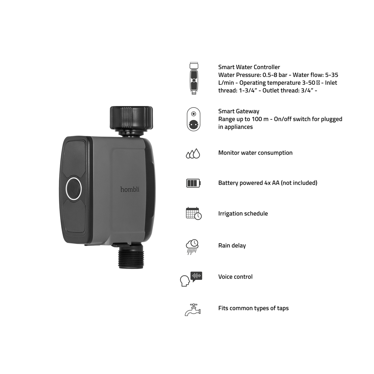 Vous souhaitez surveiller votre consommation d'eau ? L'application gratuite Hombli vous permet de consulter votre consommation actuelle 24h/24 et 7j/7. Pour réguler la consommation, vous pouvez définir des horaires, créer des scénarios intelligents ou activer la fonction Pulse pour économiser de l'eau et des coûts.