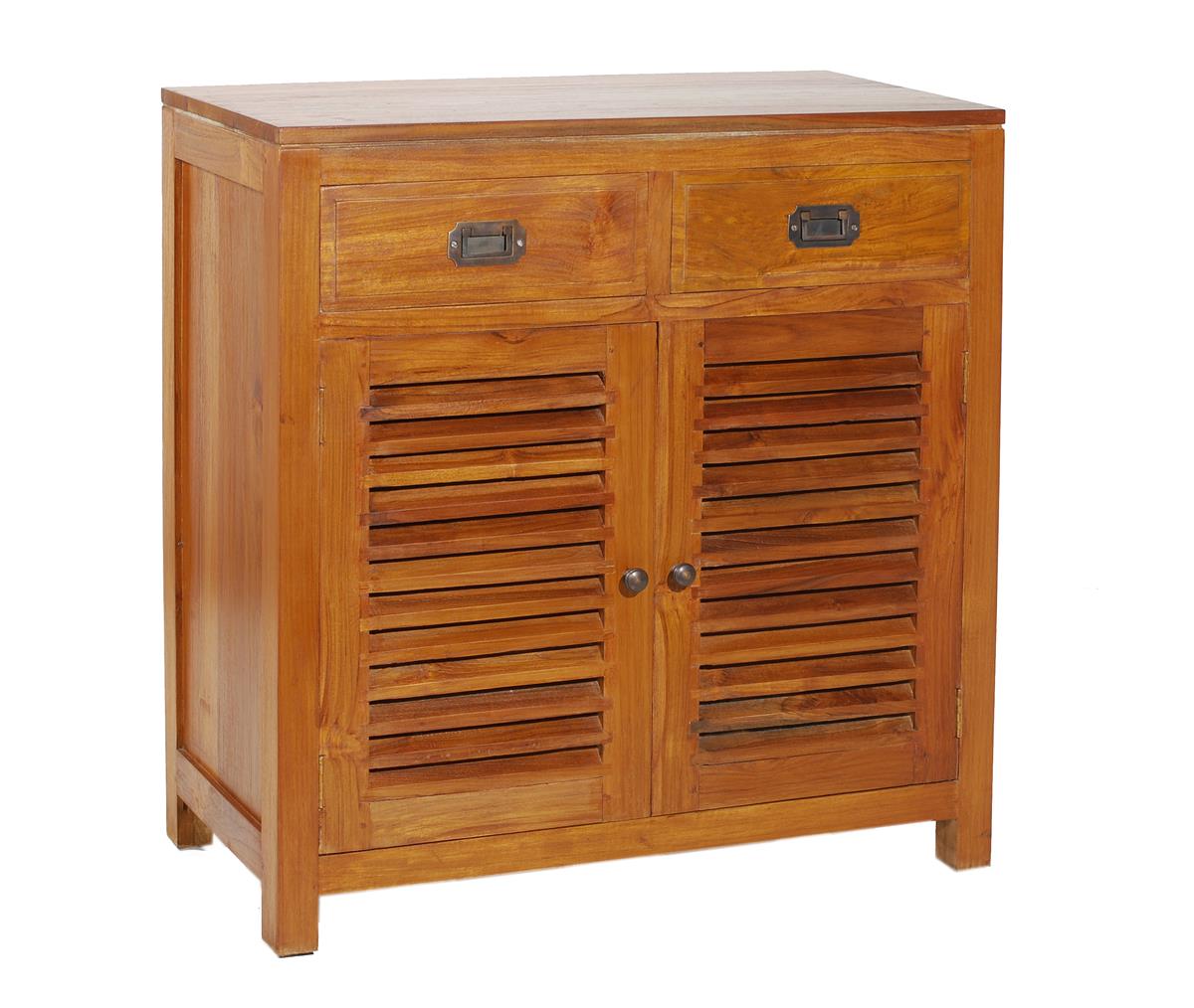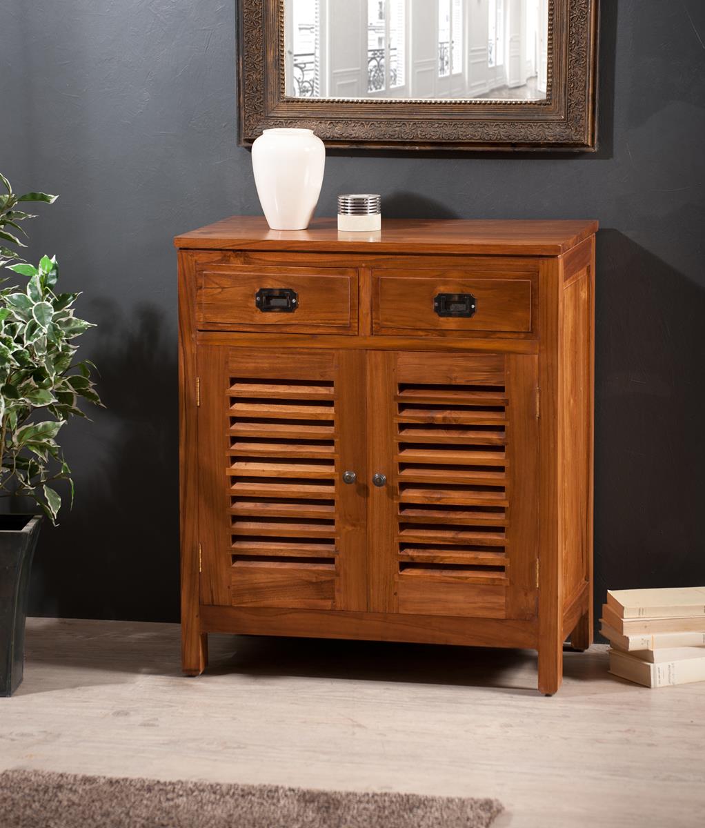 Buffet 2 portes persiennes 2 tiroirs en teck style colonial