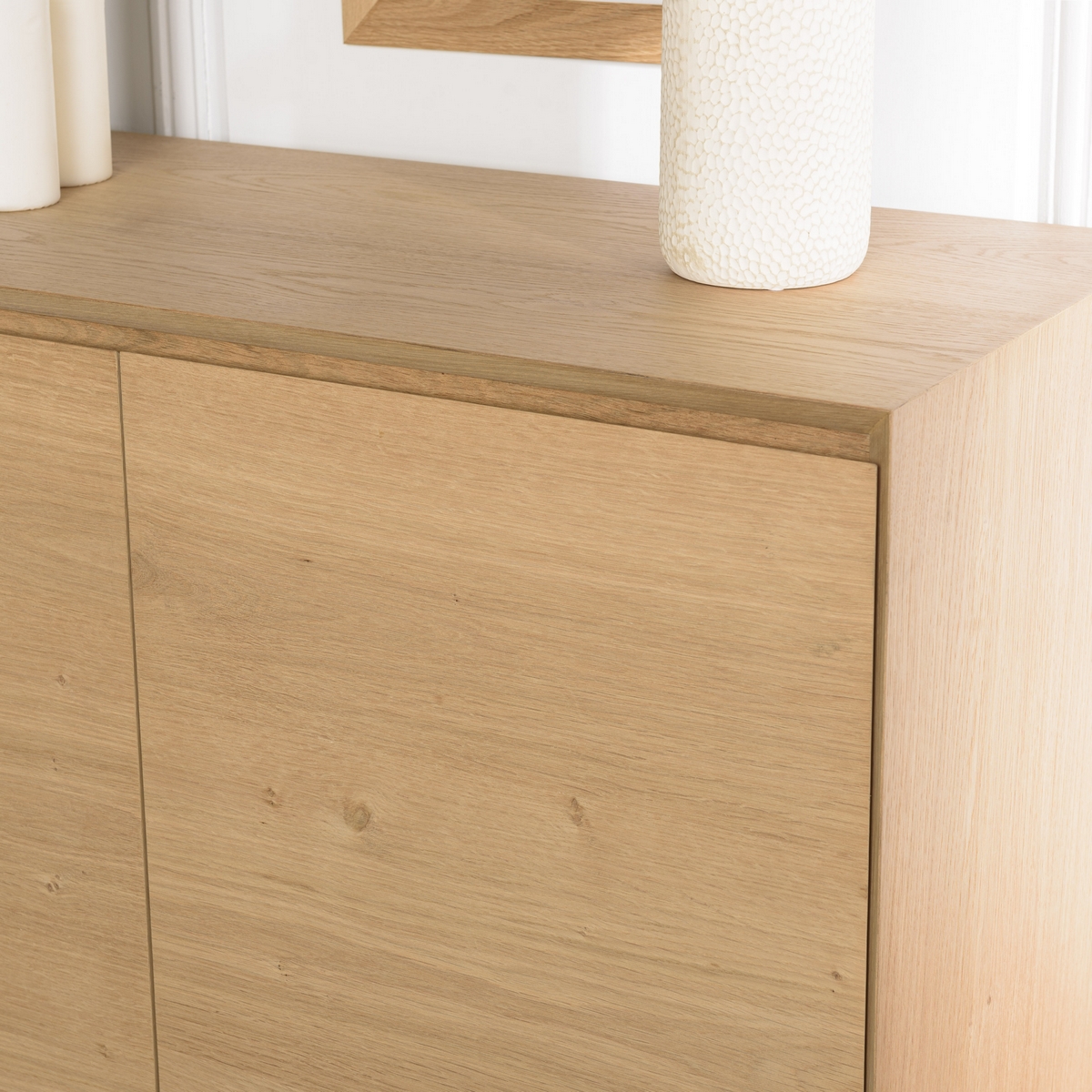 MACABANE Buffet couleur naturelle 2 portes 3 étagères pieds métal noir MAXENDRE