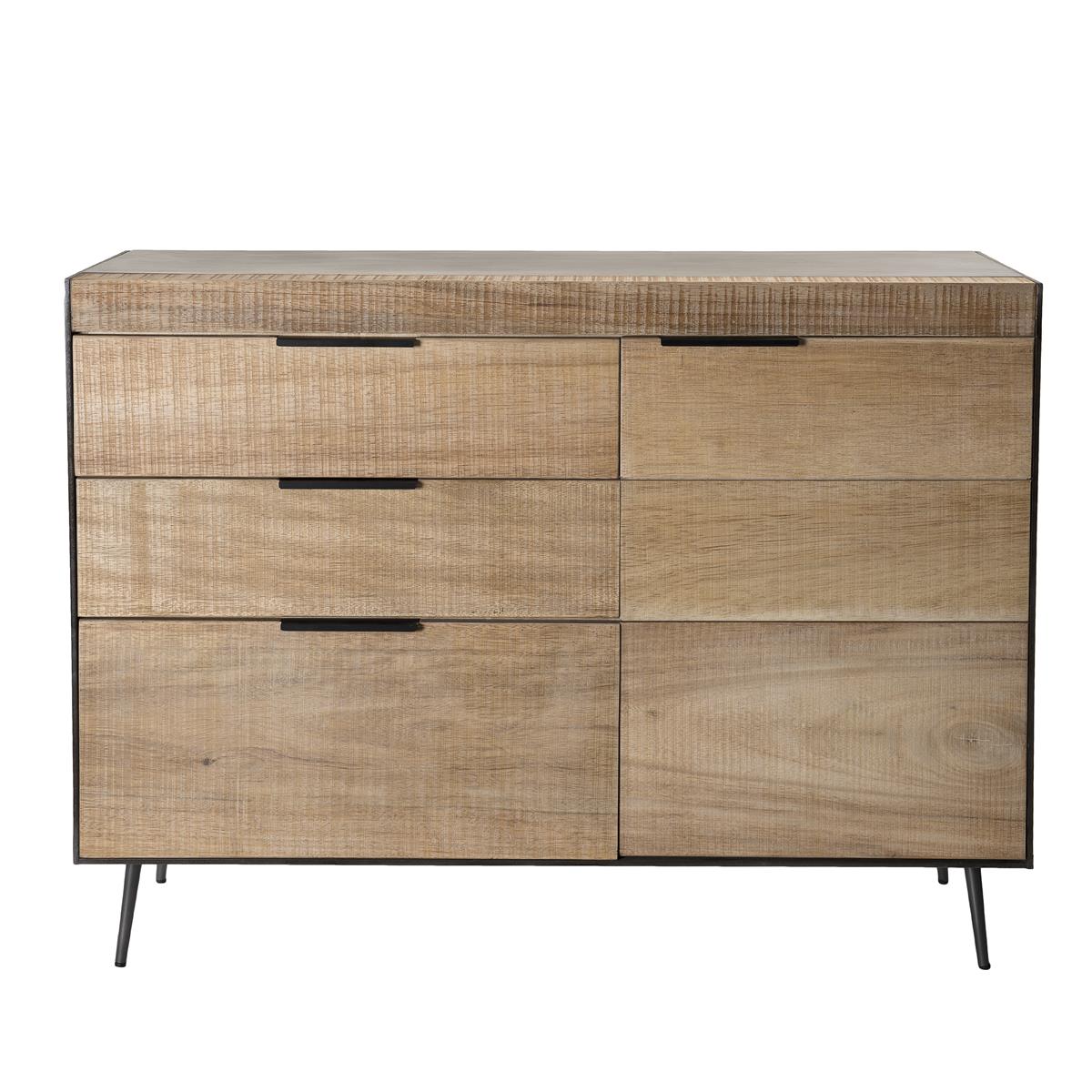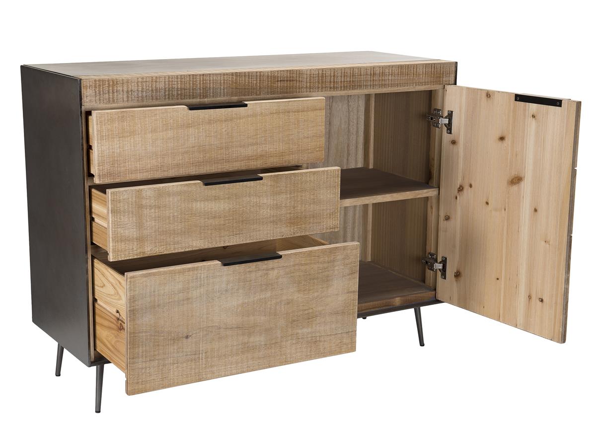 MACABANE Buffet 3 tiroirs 1 porte teck et pieds métal CARLA |