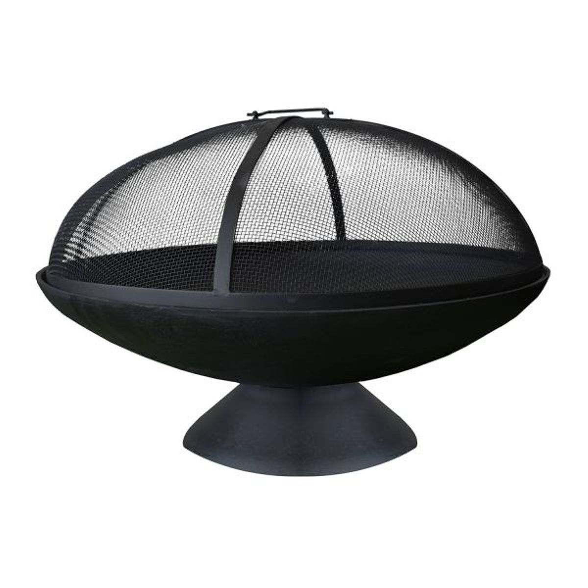 Cuve et pied en fonte peinte, cloche filet en acier noir et elle fonctionne avec du charbon ou du bois.Composé d’un pied, d’une cuve et d’une cloche en filet.Garantie 2 ans.