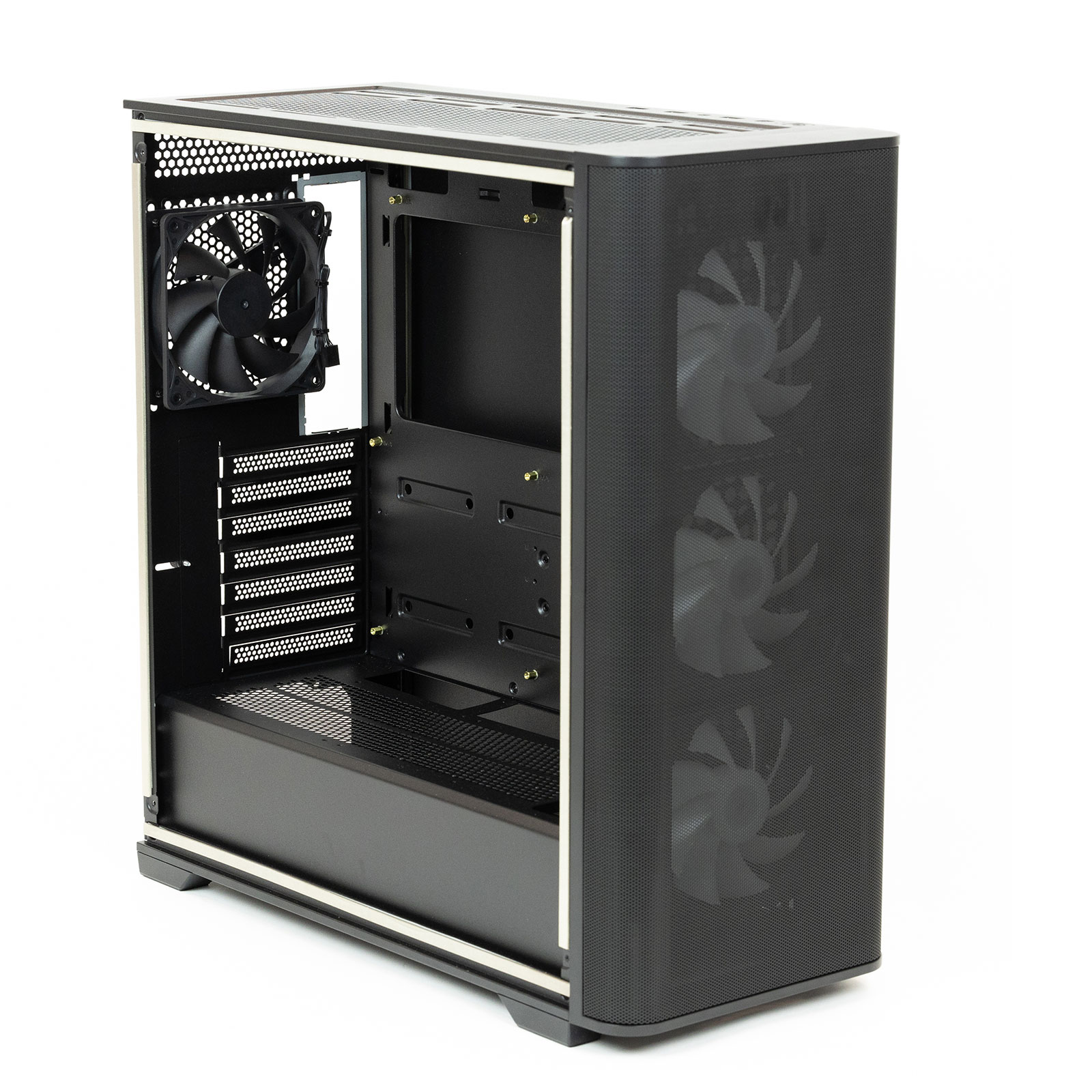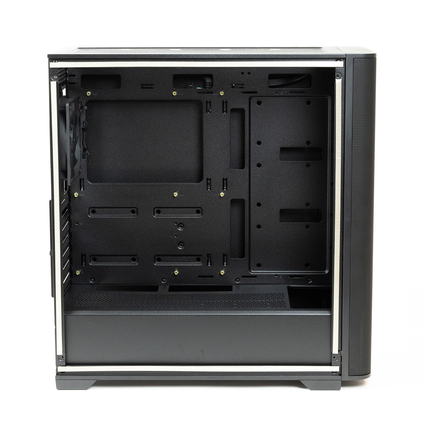 - Ventilateurs inclus : 3x 120 mm ARGB PWM (avant) + 1x 120 mm PWM (arrière)