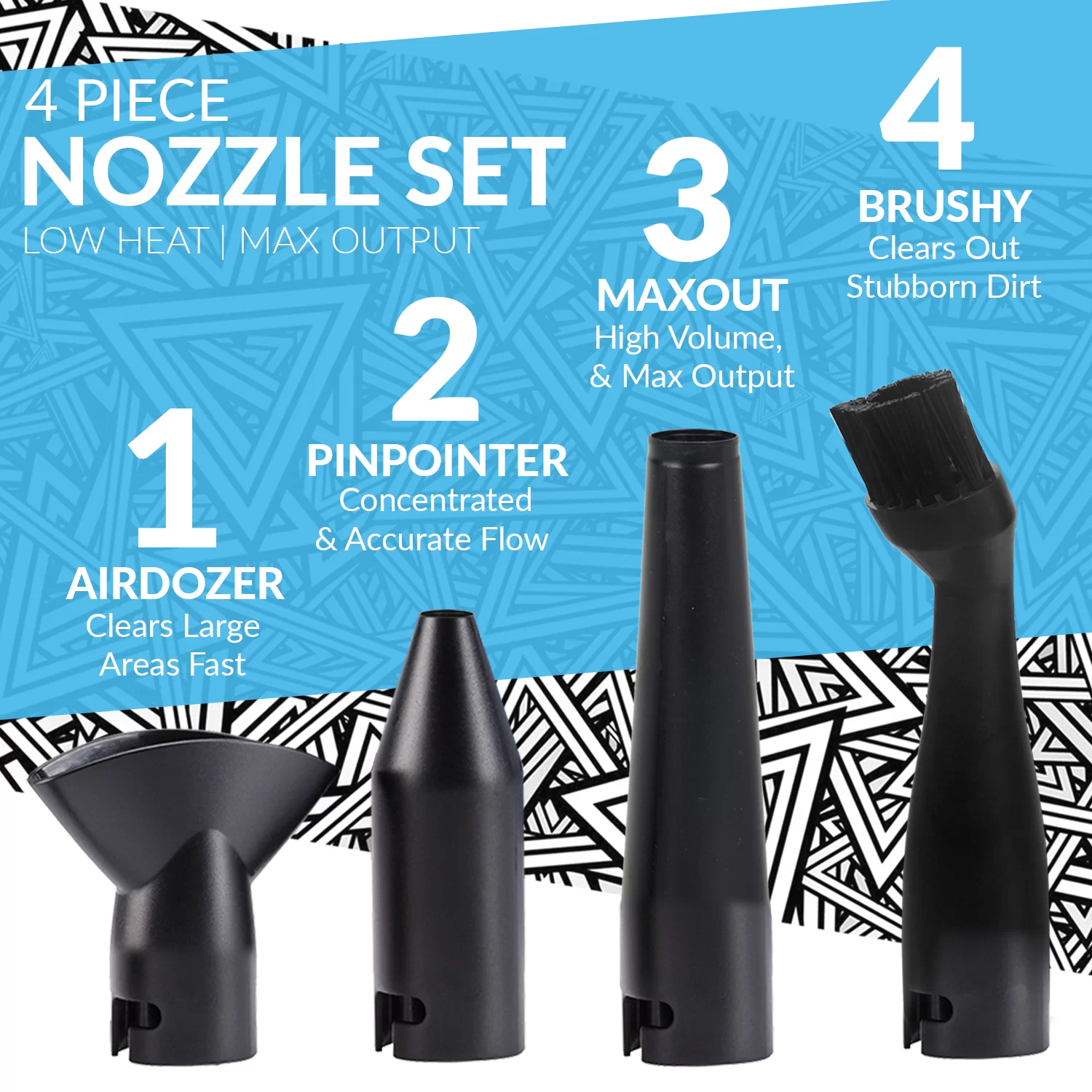 - Précision : jet d’air dirigé via interrupteur