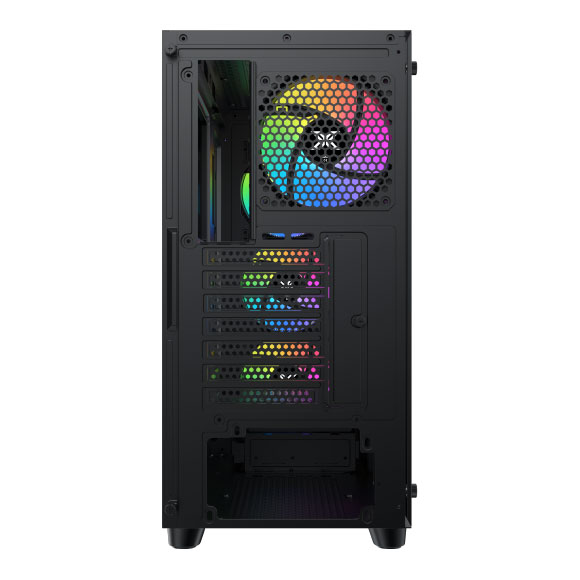 Boîtier Moyen Tour avec fenêtre en verre trempé et 4 ventilateurs ARGB avec contrôleur inclus