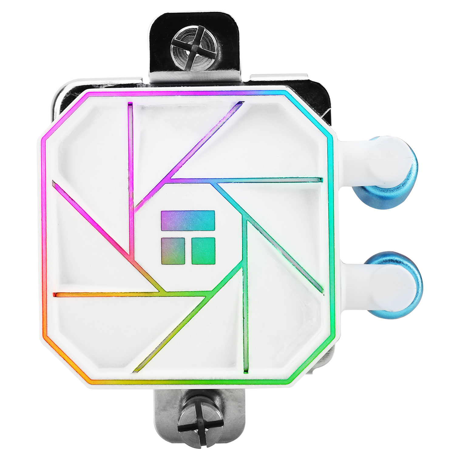 Au cœur du système, la pompe de 4e génération assure une circulation régulière du liquide pour accompagner les variations de charge du processeur. Les deux ventilateurs 120 mm PWM adaptent leur vitesse selon les besoins : pratique pour garder un bon compromis entre refroidissement et confort au quotidien. Et avec l’éclairage ARGB, vous personnalisez facilement l’ambiance, que vous visiez un PC sobre ou un setup plus affirmé.