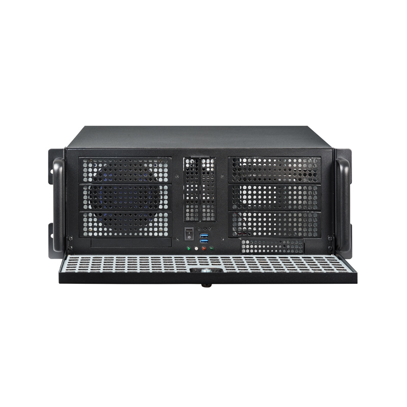 Côté refroidissement, le châssis prévoit l’installation de ventilateurs (non inclus) avec 1 x 120 mm à l’avant et 2 x 80 mm à l’arrière, pour aider vos composants à rester stables sous charge. Au quotidien, l’accès est facilité par les poignées avant démontables, pratiques lors des interventions en rack. Enfin, profitez de 2 ports USB 3.0 en façade pour connecter rapidement vos périphériques.