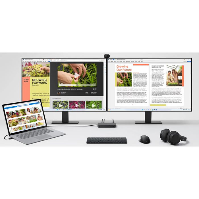 Conçue pour accompagner l’écosystème Surface, elle s’appuie sur un bloc d’alimentation 165 W avec Power Delivery jusqu’à 96 W afin d’alimenter efficacement vos appareils compatibles. En télétravail, le port Ethernet 2,5 GbE stabilise vos appels et vos téléchargements, tandis que la prise jack 3,5 mm gère simplement casque et micro. Un emplacement antivol Kensington aide à sécuriser l’installation.