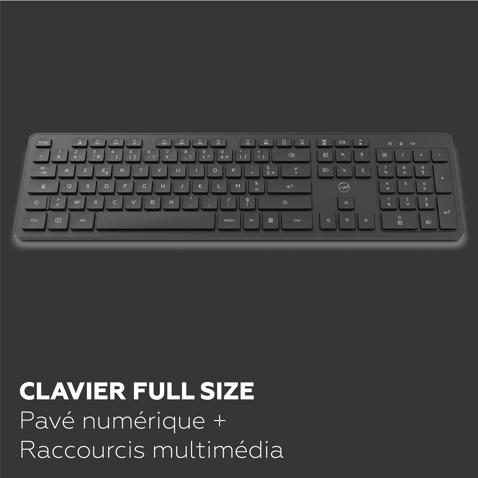 Clavier sans fil - RF 2.4 GHz - touches plates - pavé numérique - AZERTY, français