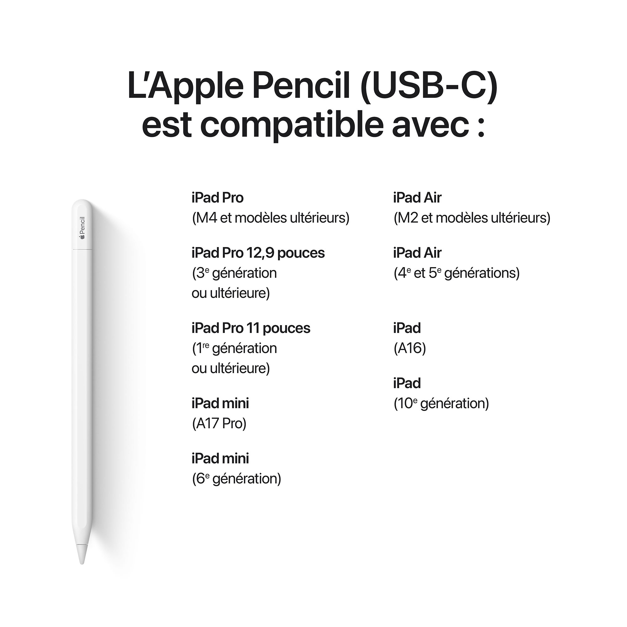 Avec l’Apple Pencil (USB-C), profitez d’un stylet pensé pour exploiter tout le potentiel de votre iPad, au quotidien comme en création. Que vous preniez des notes en cours, que vous signiez un PDF ou que vous griffonniez une idée dans un carnet numérique, sa précision au pixel près et sa faible latence rendent chaque trait net, immédiat et maîtrisé.
