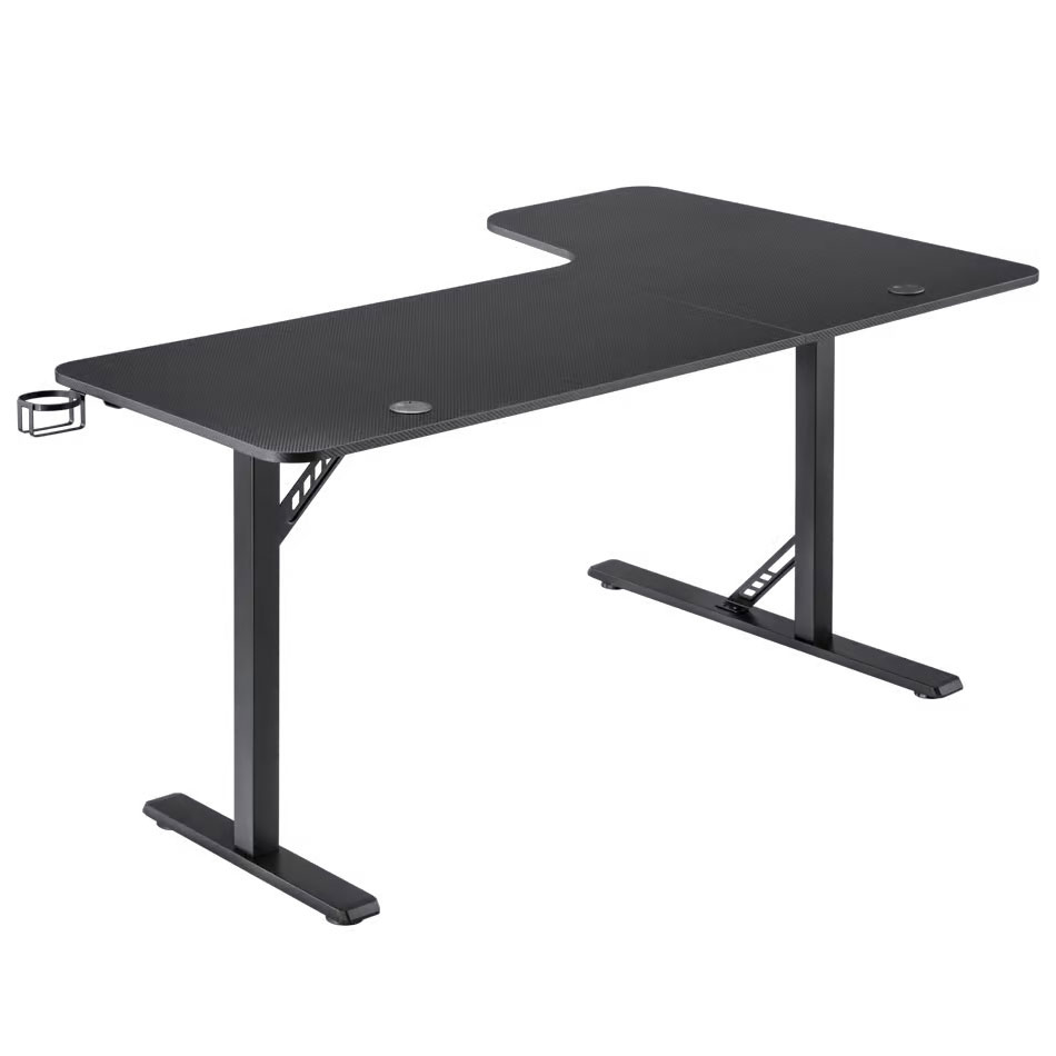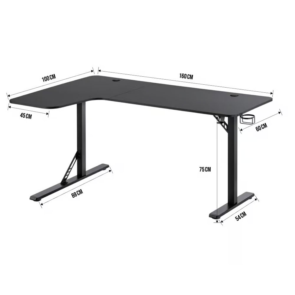 Bureau d'angle pour gamer - longueur 160 cm - profondeur 60/100 cm - hauteur 75 cm - structure en métal - système de passage des câbles - repose casque et port gobelet