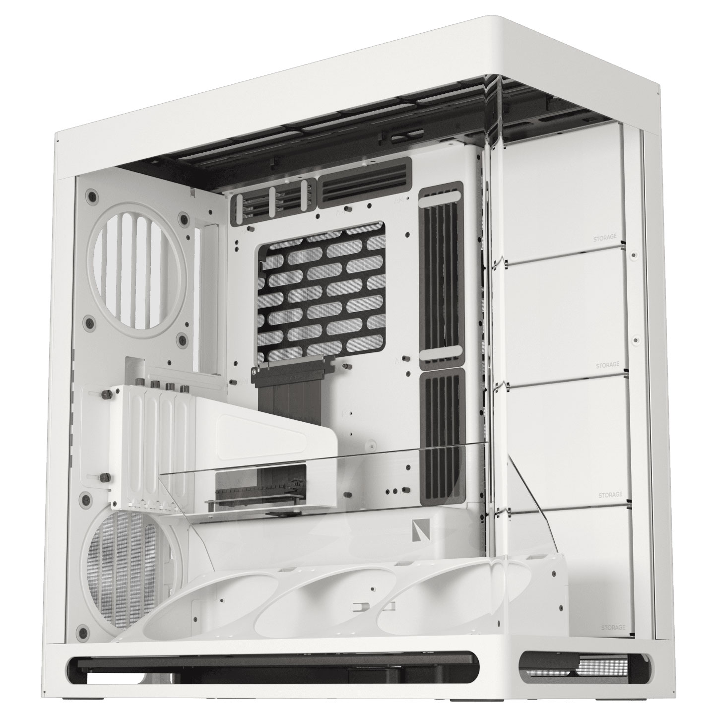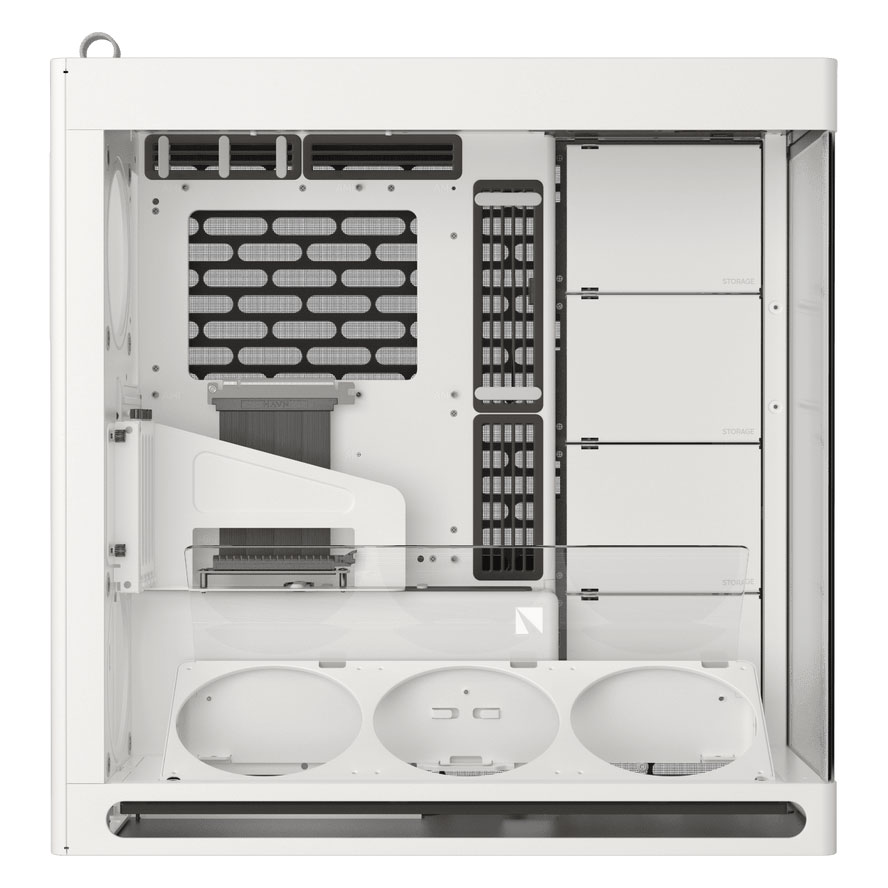 Pour un montage propre, le système SimpliCable et le concentrateur de ventilateurs simplifient l’organisation des câbles et accélèrent l’assemblage. Et si vous souhaitez mettre votre GPU en avant, le boîtier intègre un montage vertical avec Riser PCIe 5.0 et un support ajustable 4 slots, parfait pour une présentation nette derrière le verre.