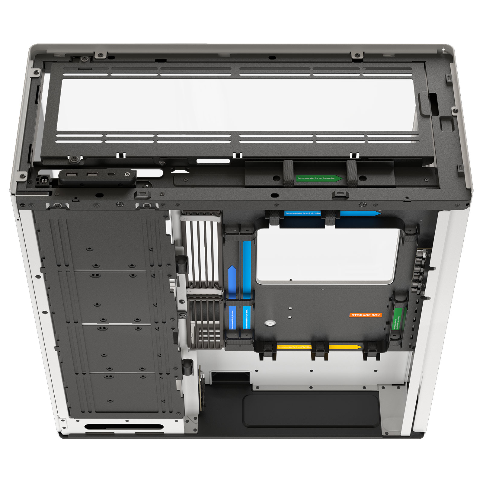 - Ventilateurs : Jusqu’à 11 emplacements, optimisé pour 140 mm
