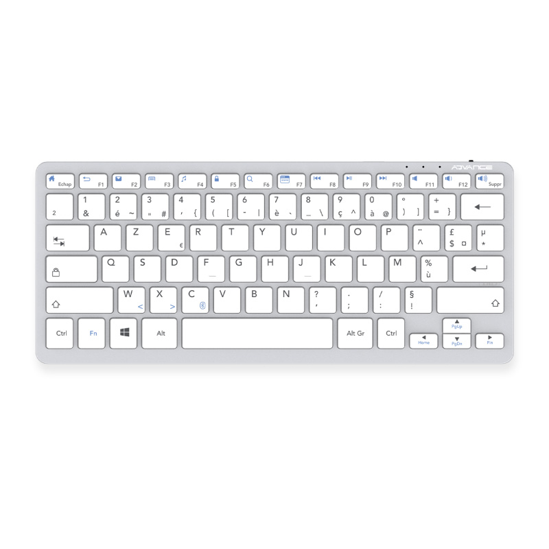 Le clavier sans fil Advance SMARTKEY PLUS se présente comme le parfait allié pour tous les utilisateurs à la recherche de mobilité et d'efficacité. Son design soigné, qui arbore une finition façon aluminium, offre une élégance discrète tout en garantissant une grande robustesse. Doté de la technologie Bluetooth 5.0, il se connecte aisément à une multitude de plateformes, qu'il s'agisse de Windows, Android, macOS ou iOS, ce qui le rend incroyablement polyvalent.