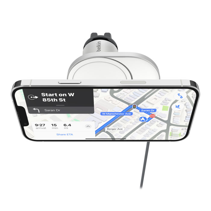 Côté confort, le support pivote pour passer facilement du mode portrait au mode paysage selon votre usage. La sangle et le rangement de câble limitent les enchevêtrements pour un habitacle net. Compatible avec les coques de protection MagSafe, il s’intègre discrètement avec un design fin. Et pour simplifier l’installation, un chargeur secteur USB-C PD 20 W est inclus.
