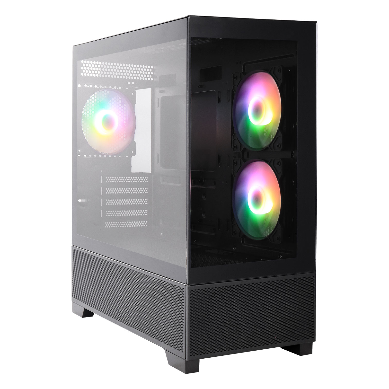 Boîtier PC Moyen Tour Aquarium avec panneau latéral et façade en verre trempé + 3 ventilateurs ARGB 120 mm