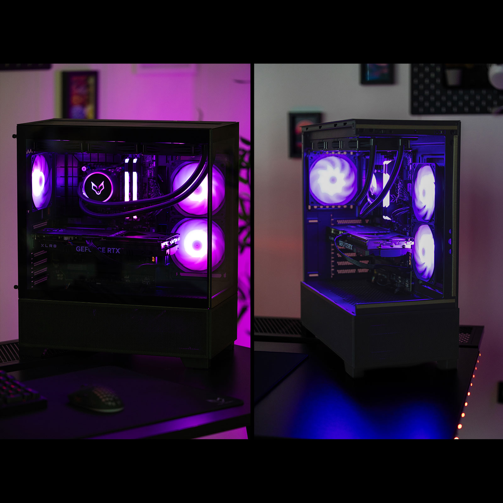 Dès l’allumage, vous profitez d’un flux d’air maîtrisé avec 3 ventilateurs 120 mm ARGB préinstallés (dont 2 inversés sur le côté). En jeu ou en création, l’air circule efficacement pour stabiliser votre configuration. Et si vous visez une dissipation encore plus ambitieuse, le boîtier accepte un watercooling AIO jusqu’à 360 mm afin de maintenir des températures sereines lors des charges soutenues.