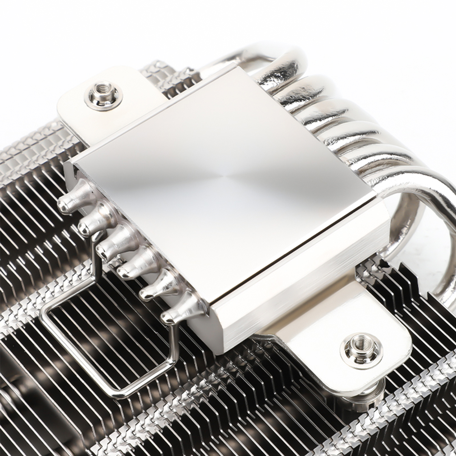 Le Thermalright AXP120-X67 est un ventirad low profile Top Flow pensé pour les configurations où chaque millimètre compte. Dans un boîtier compact, il facilite l’intégration tout en apportant un flux d’air ciblé autour du socket. Sa conception associe une base en cuivre pur C1100 nickelé et 6 heatpipes de 6 mm pour optimiser la dissipation au plus près du processeur.
