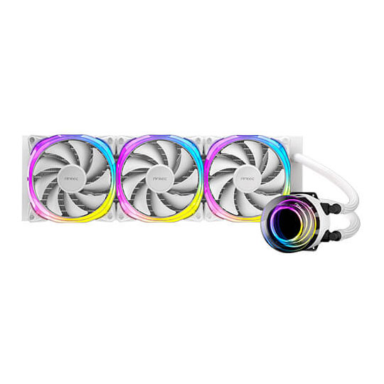 Le Antec Vortex 360 ARGB White est un kit de watercooling innovant, conçu pour offrir à la fois un refroidissement optimal et une esthétique lumineuse incomparable grâce à son éclairage LED ARGB. Ce système tout-en-un se hisse au sommet de la technologie actuelle avec sa tête de pompe en forme de vortex, capable d'illuminer votre configuration d'une palette de couleurs subtile et élégante tout en maintenant des performances thermiques remarquables.