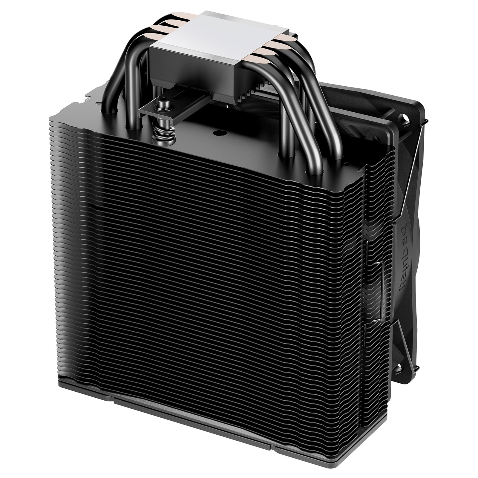 L'intégration du ventilateur Pure Wings 3 de 120 mm PWM garantit une dissipation thermique optimale tout en maintenant un niveau sonore minimal, grâce à sa conception innovante avec une sortie d'air en forme d'entonnoir. Cette configuration permet de réguler l'air avec précision et favorise ainsi un refroidissement performant même sous de lourdes charges. De plus, le ventirad assure une compatibilité élargie grâce à son design compact, permettant une intégration aisée avec les barrettes RAM et les radiateurs VRM.