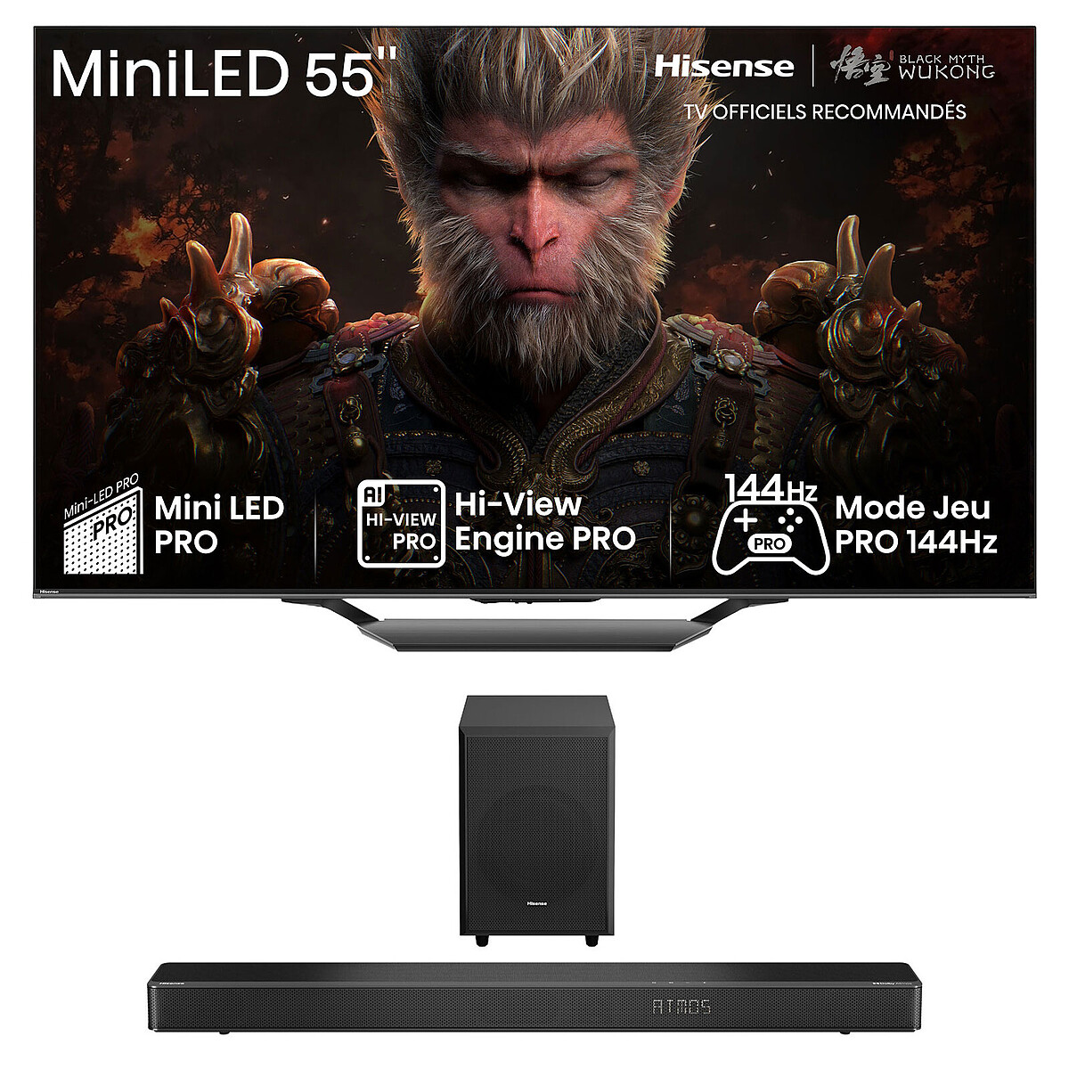 Que vous soyez amateur de films, de séries ou de jeux vidéo, le combo Hisense 55U7NQ et AX3120G transforme votre espace multimédia en un véritable centre de divertissement à la maison.