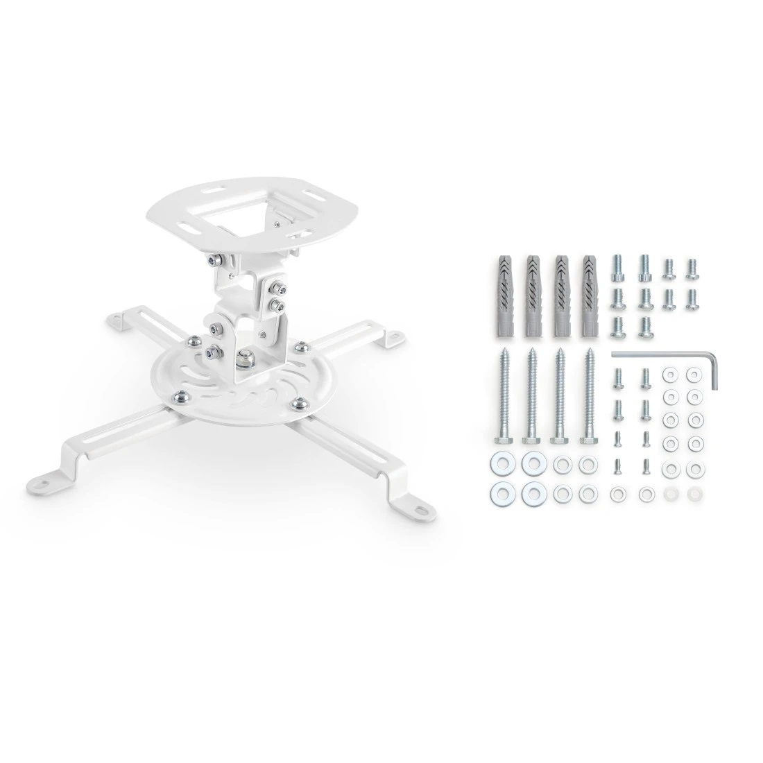 Ce support polyvalent offre une installation aisée grâce à ses quatre bras porteurs adaptables, s'ajustant parfaitement à n'importe quel boîtier de vidéoprojecteur. Avec ses orifices filetés pouvant accueillir des écartements de 54 à 320 mm, il se montre d'une compatibilité redoutable pour différents modèles. Sa robustesse lui permet de soutenir jusqu'à 13,5 kg, vous assurant ainsi une sécurité maximale pour vos équipements.
