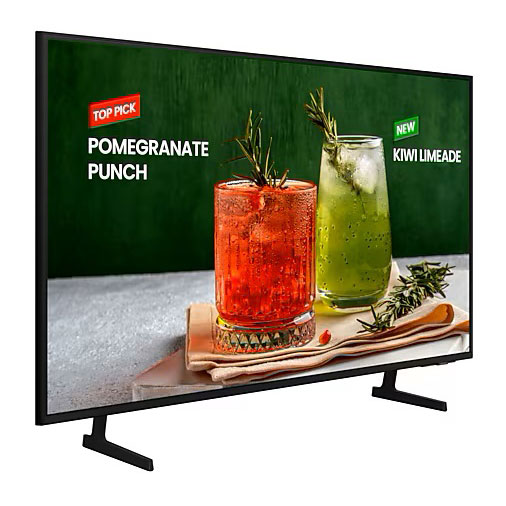 Au quotidien, vous gagnez en fluidité de gestion avec Tizen Smart TV et l’application Samsung Business TV : créez, planifiez et mettez à jour vos playlists directement, sans complexité. Pratique pour adapter une campagne à la minute ou déployer une charte sur plusieurs espaces. Le design ultra-fin aux bords fins sur trois côtés facilite aussi l’intégration sur un mur ou un support, pour un rendu propre et professionnel.