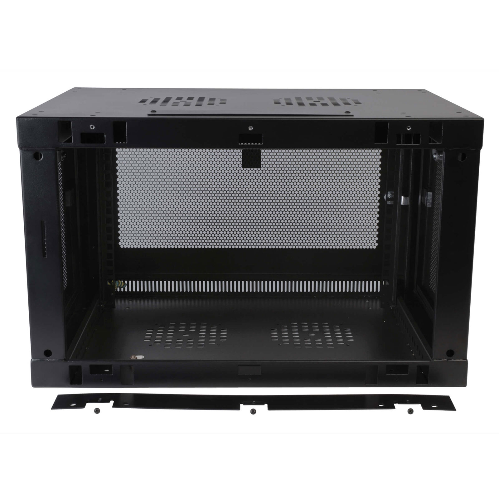 La ventilation est intégrée à la conception : portes et côtés ventilés, plus des aérations en partie haute et basse, pour une circulation d’air efficace de l’avant vers l’arrière et du haut vers le bas. Livré entièrement assemblé, ce rack 6U accepte des équipements jusqu’à 419 mm de profondeur et peut contribuer à vos exigences de conformité, notamment PCI DSS, lorsque la sécurité physique est un impératif.