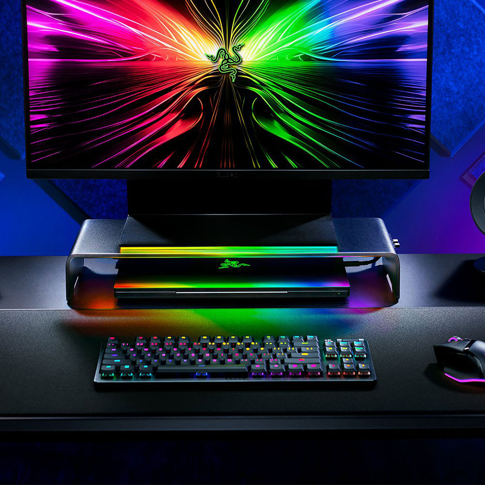 En résumé, le Razer Monitor Stand Chroma est bien plus qu'un simple support pour moniteur. Avec son design en aluminium élégant, son rétroéclairage personnalisable RGB et sa fonction de hub ingénieuse, il coche toutes les cases pour devenir un élément essentiel de votre espace numérique. Transformez votre bureau en un centre de commandement technologique et rehaussez votre expérience utilisateur au quotidien avec cet accessoire indispensable signé Razer.