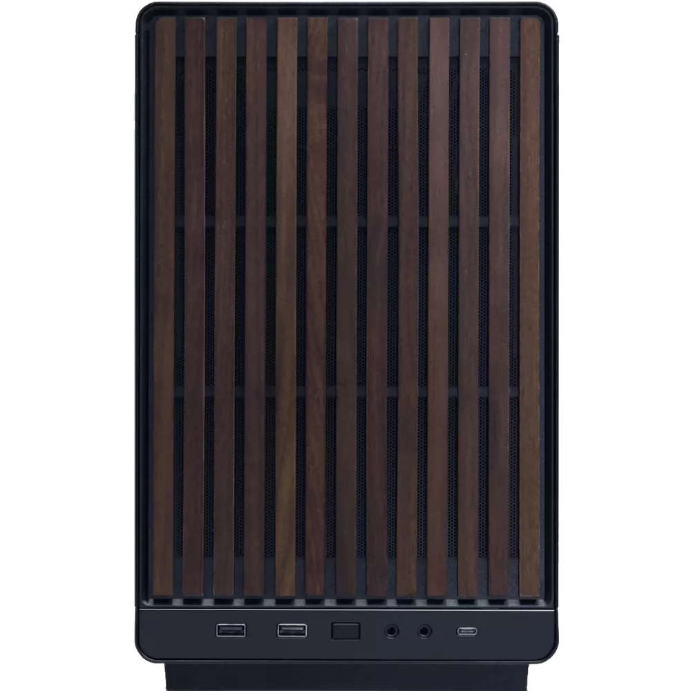 Boitier Mini Tour avec panneau latéral en verre trempé et façade en bois foncé conçu en collaboration avec DAN Cases
