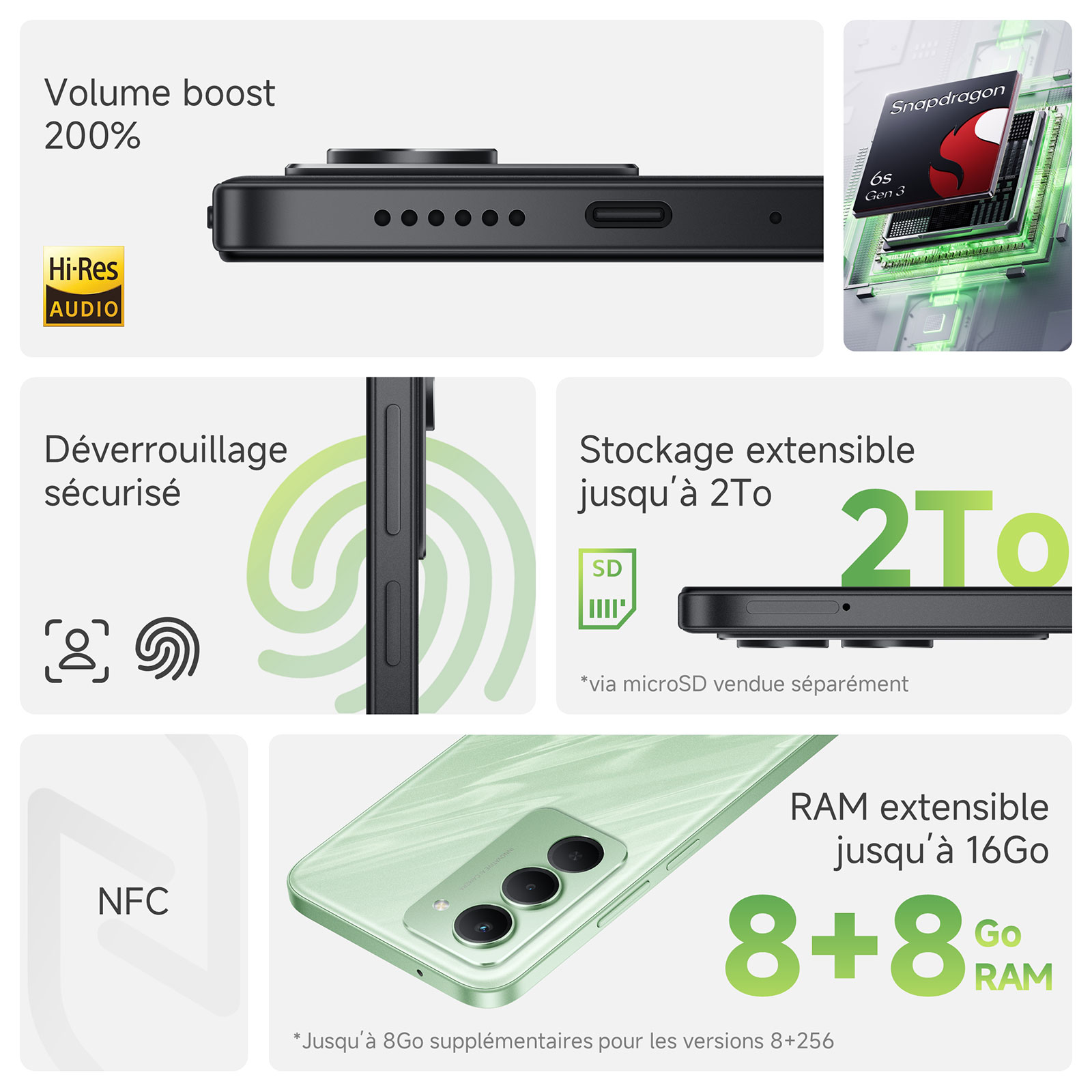 - Processeur : Snapdragon 6s Gen 3, 8 cœurs, 2.3 GHz