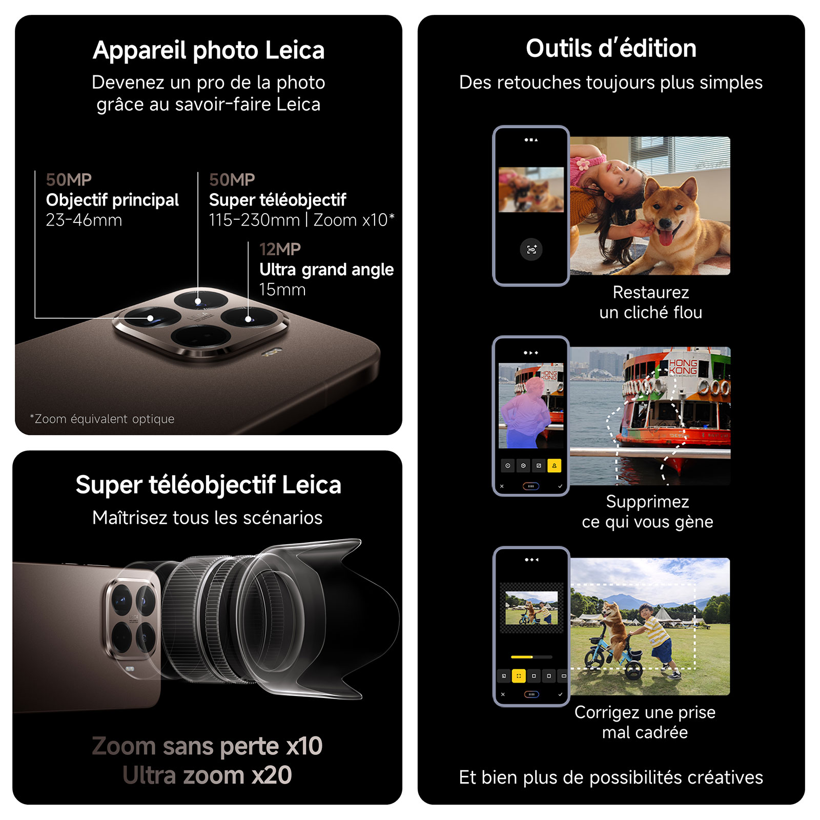 - Caméras arrière : Triple Leica 50 + 50 + 12 MP (téléobjectif x5, ultra grand-angle)