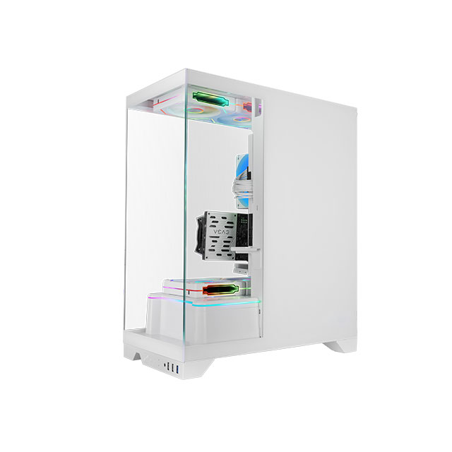 Le MC-PRISMA se distingue par sa structure à double chambre et ses panneaux en verre trempé qui révèlent intégralement vos composants, permettant une mise en valeur spectaculaire de votre configuration. L'éclairage ARGB, entièrement compatible avec Asus Aura Sync, RGB Fusion et MSI Mystic Light, permet de synchroniser les effets lumineux avec le reste de votre matériel pour créer une ambiance totalement immersive. Le châssis a été pensé pour conjuguer esthétisme, silence et efficacité thermique.