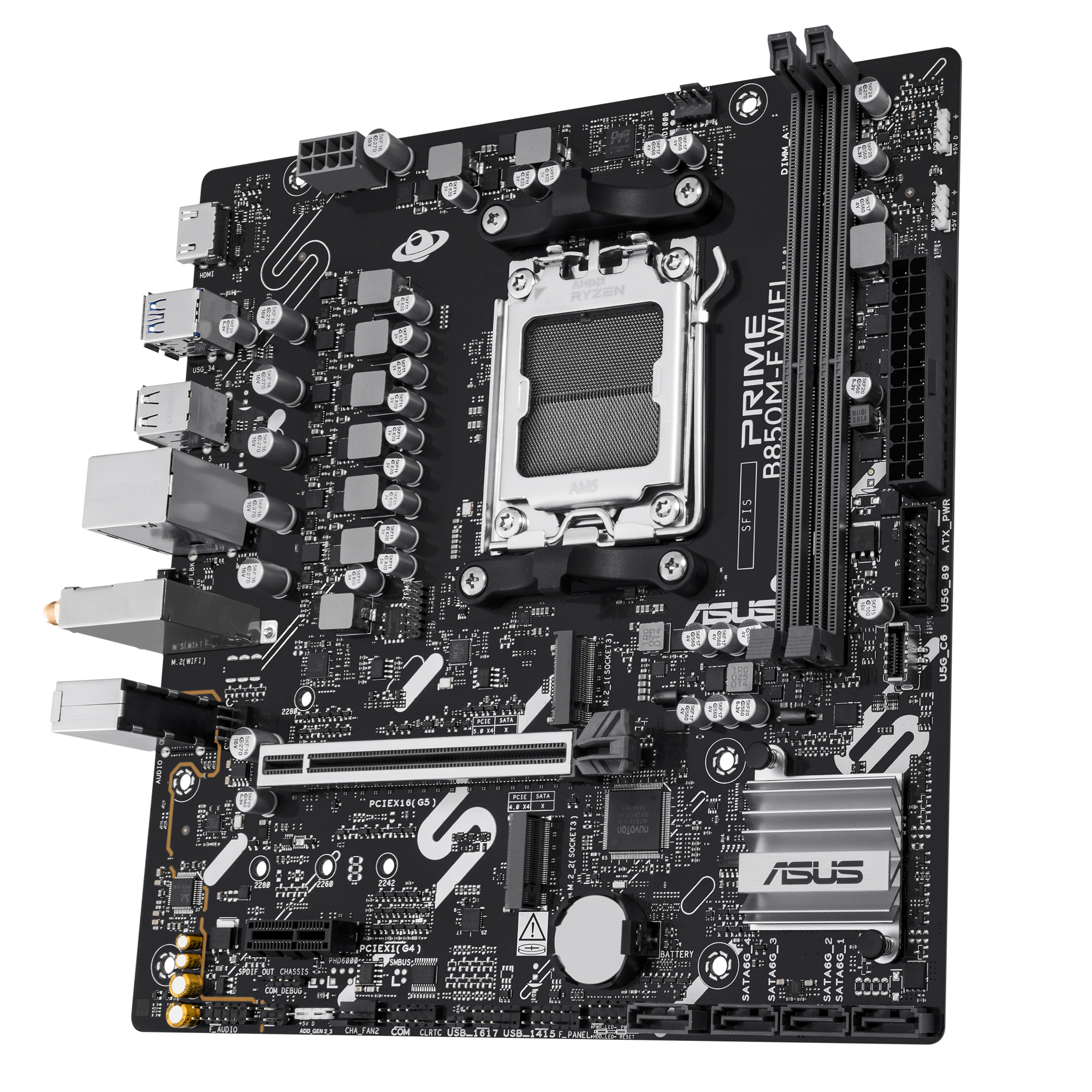 Conçue autour du chipset AMD B850, l’ASUS PRIME B850M-F WIFI accueille les processeurs AMD Ryzen 7000/8000/9000 sur socket AM5 pour bâtir une configuration gaming ou multimédia fiable. Au quotidien, vous profitez d’une plateforme Micro ATX facile à intégrer dans un boîtier compact, tout en conservant l’essentiel pour jouer, créer et travailler avec une excellente stabilité.