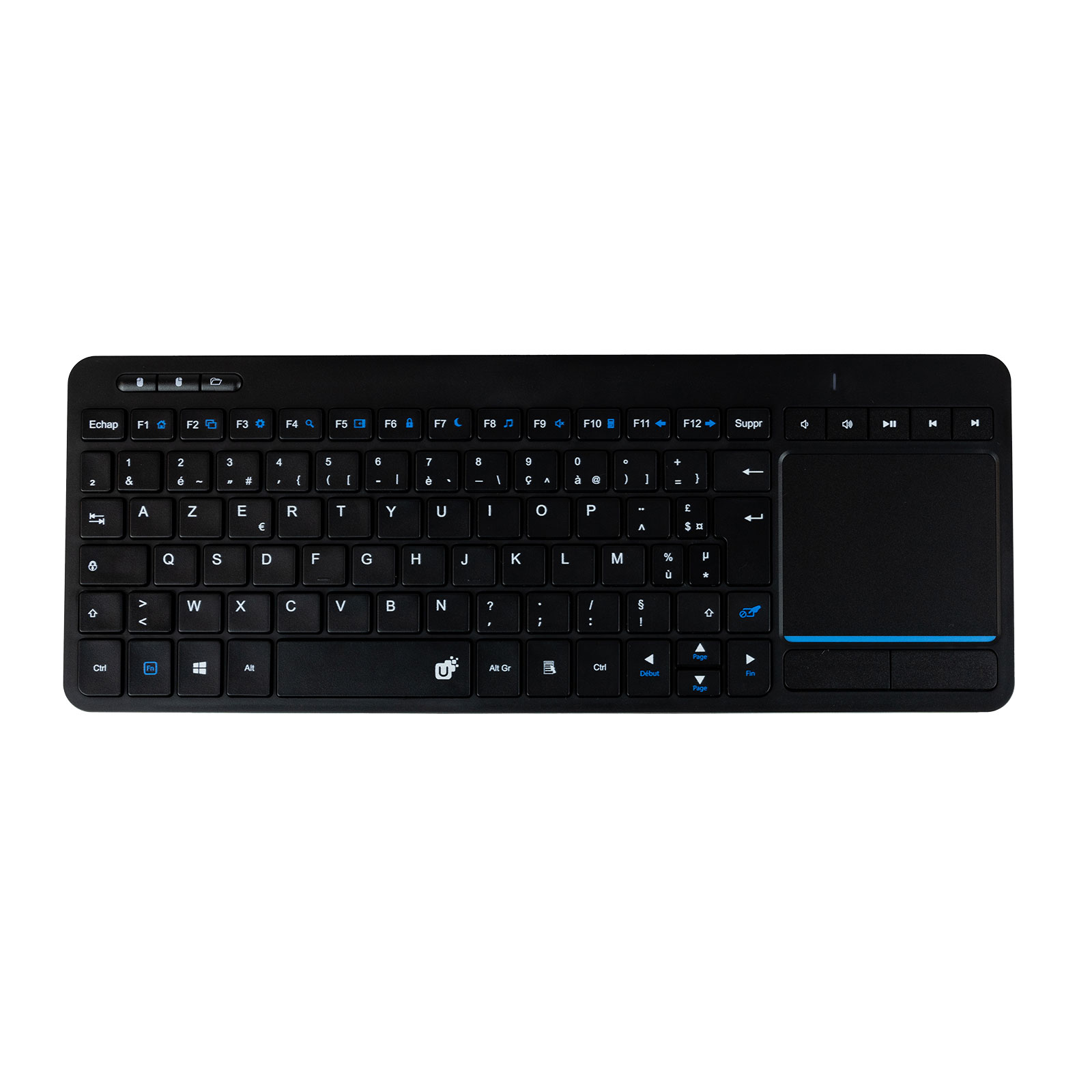 - Type : clavier multimédia sans fil avec touchpad intégré