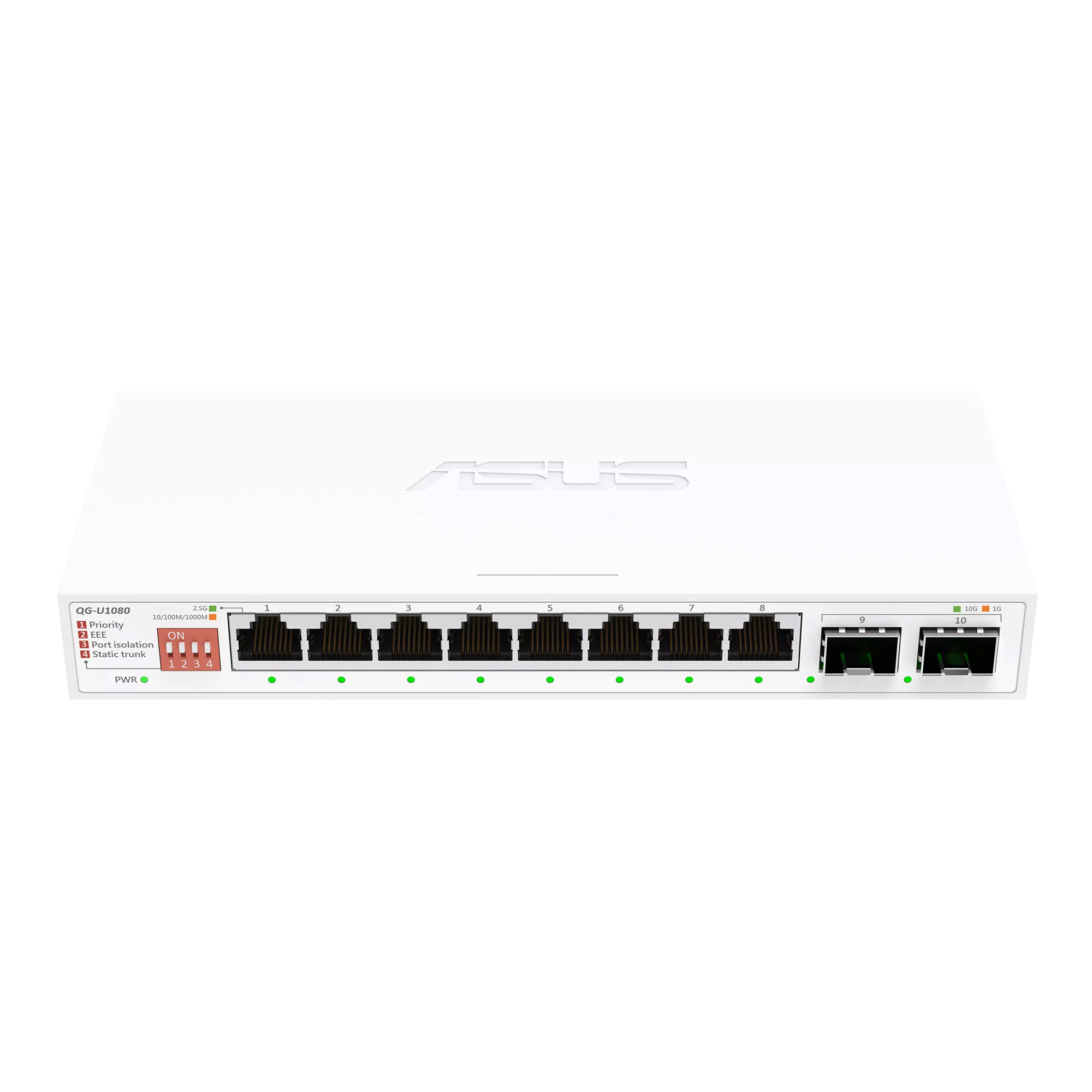 Le QG-U1080 intègre aussi deux ports 10 GbE SFP+ pour soutenir une dorsale réseau plus rapide, par exemple vers un NAS ou un cœur de réseau. Ses 4 modes intelligents (priorité, EEE, isolation des ports, tronc statique) aident à optimiser et sécuriser votre environnement, que vous partagiez la connexion au bureau ou que vous segmentiez des appareils à la maison.
