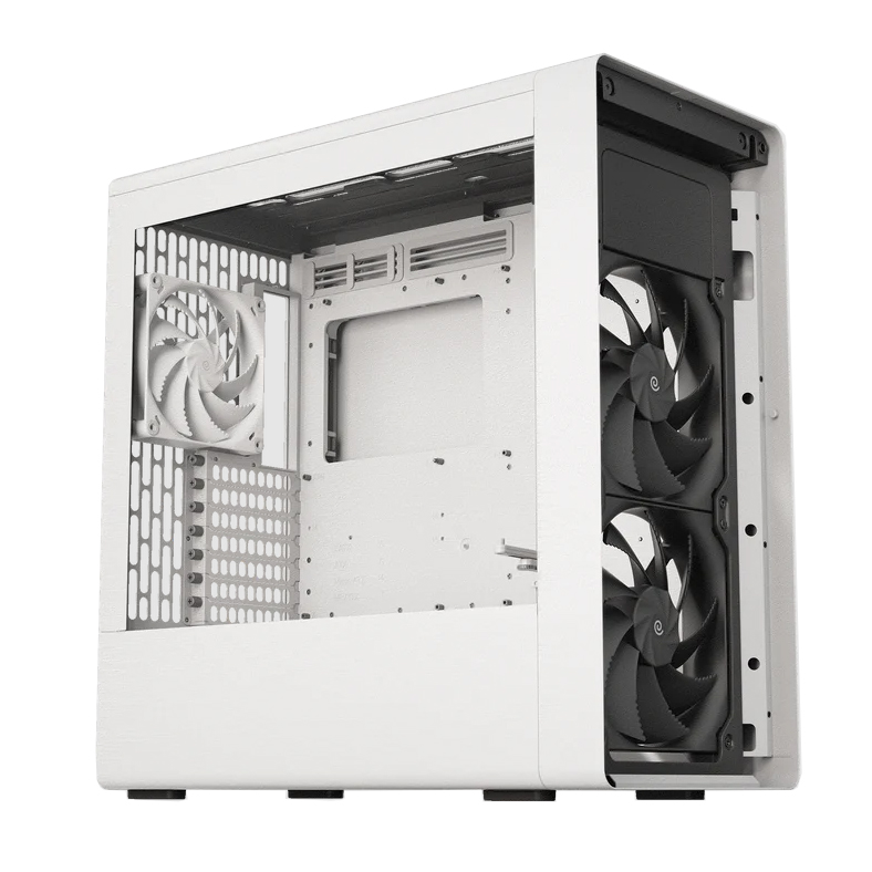 Dès l’assemblage, vous appréciez les 3 ventilateurs inclus - 2 x H18 180 mm à l’avant et 1 x H14 140 mm à l’arrière - conçus pour un fonctionnement ultra silencieux grâce aux roulements FDB. La structure semi-ouverte facilite la circulation d’air et simplifie l’entretien : un dépoussiérage rapide, un accès direct aux composants, et votre PC reste performant. Idéal si vous faites évoluer régulièrement votre configuration.