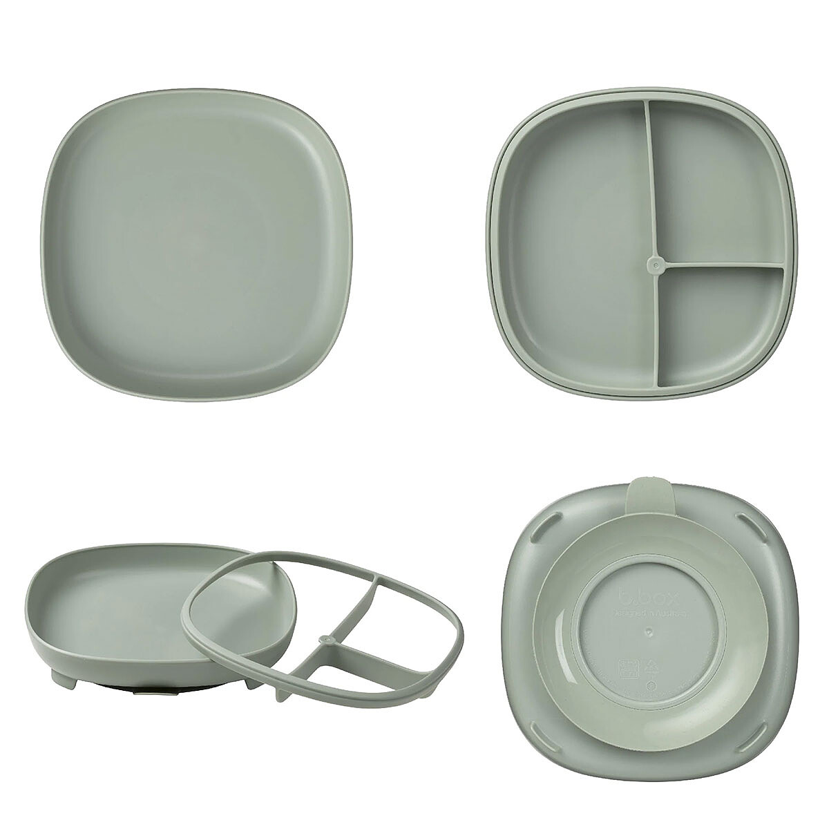 b.box for kids Assiette Compartimentée à Ventouse 2-en-1 - Sage |