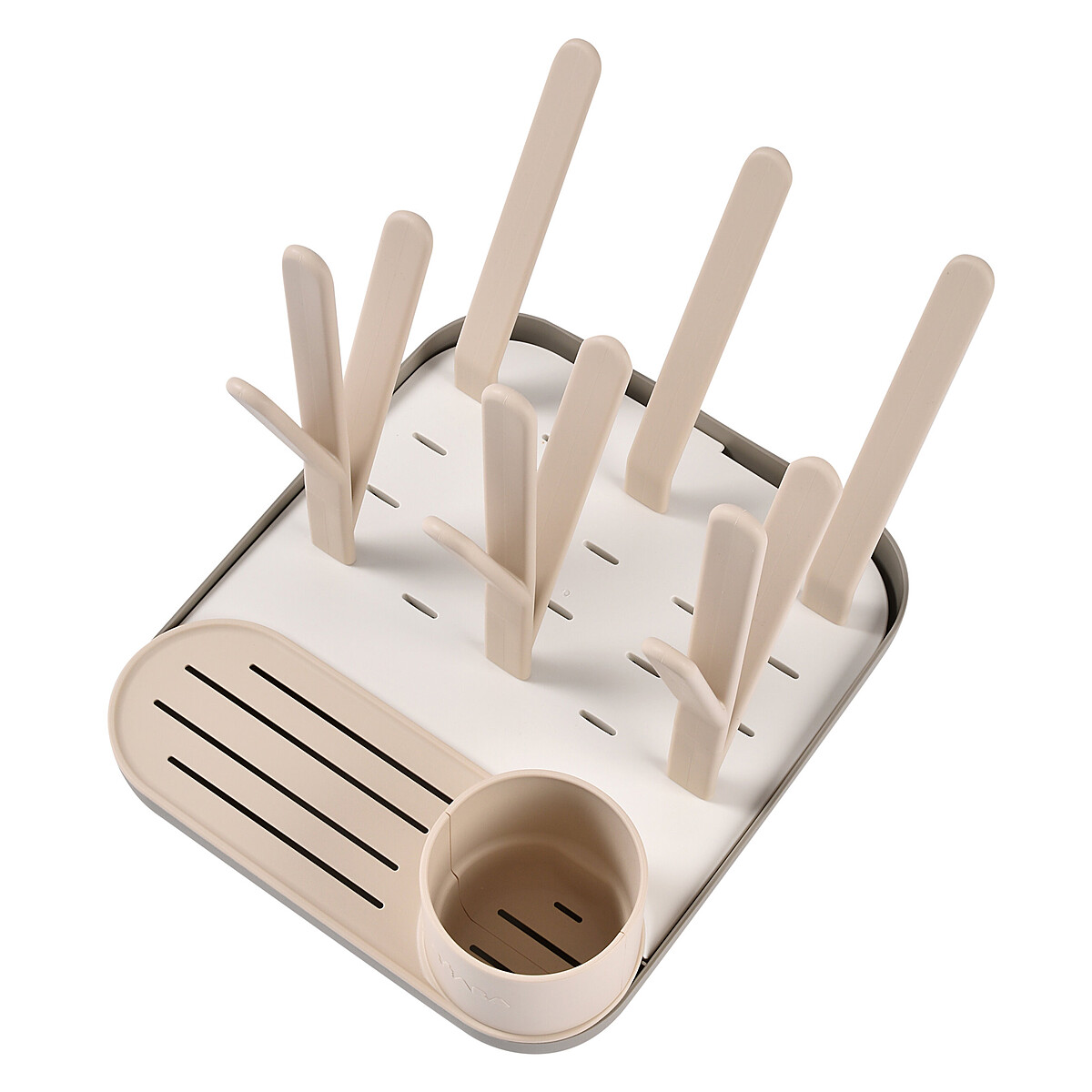 Grâce à ses tiges modulables à l’infini, la famille ajustera la disposition selon ce qui doit sécher : biberons, bagues, couvercles ou petits accessoires. Vous changerez l’organisation en un geste pour gagner de la place et retrouver facilement chaque pièce au moment de remonter un biberon. Le pot à accessoires intégré accueillera aussi les sucettes, tétines ou pailles, pour un séchage séparé et plus net.